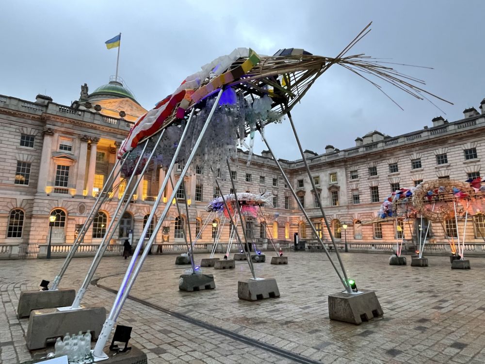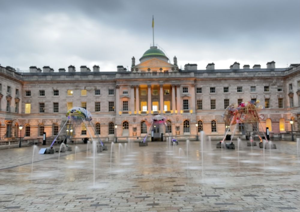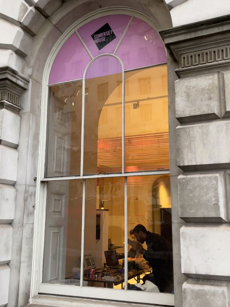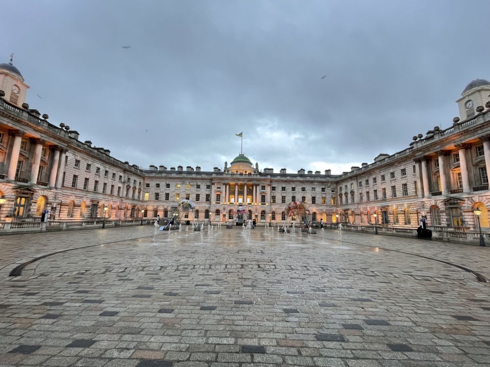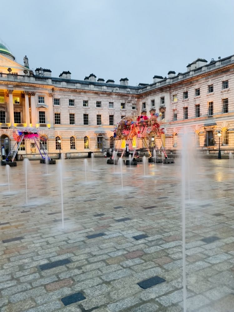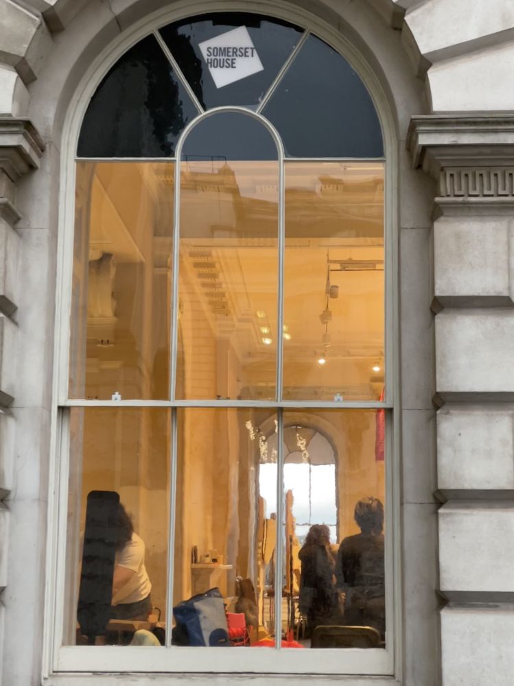 昨天晩餐后走滑铁卢桥,见桥边一幢大楼里灯火通明,人影憧憧。我大胆往里闯,原来是设在Somerset House里的多个艺术工作室,有些是免费的。整个大楼免费开放,自由出入。里面很大,分东、西翼。内庭有喷泉广场,今天有在拍电影。我冒着大风大雨逛了一圈,太有味道了!