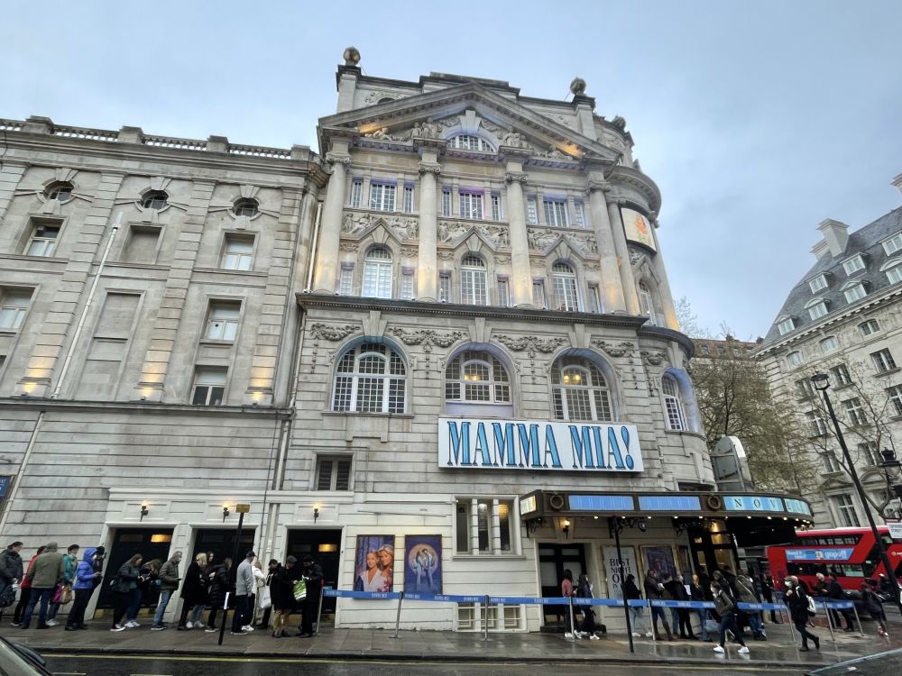 桥的北岸应该是剧场区吧?类似纽约的百老汇。每个剧场门口都有排队: