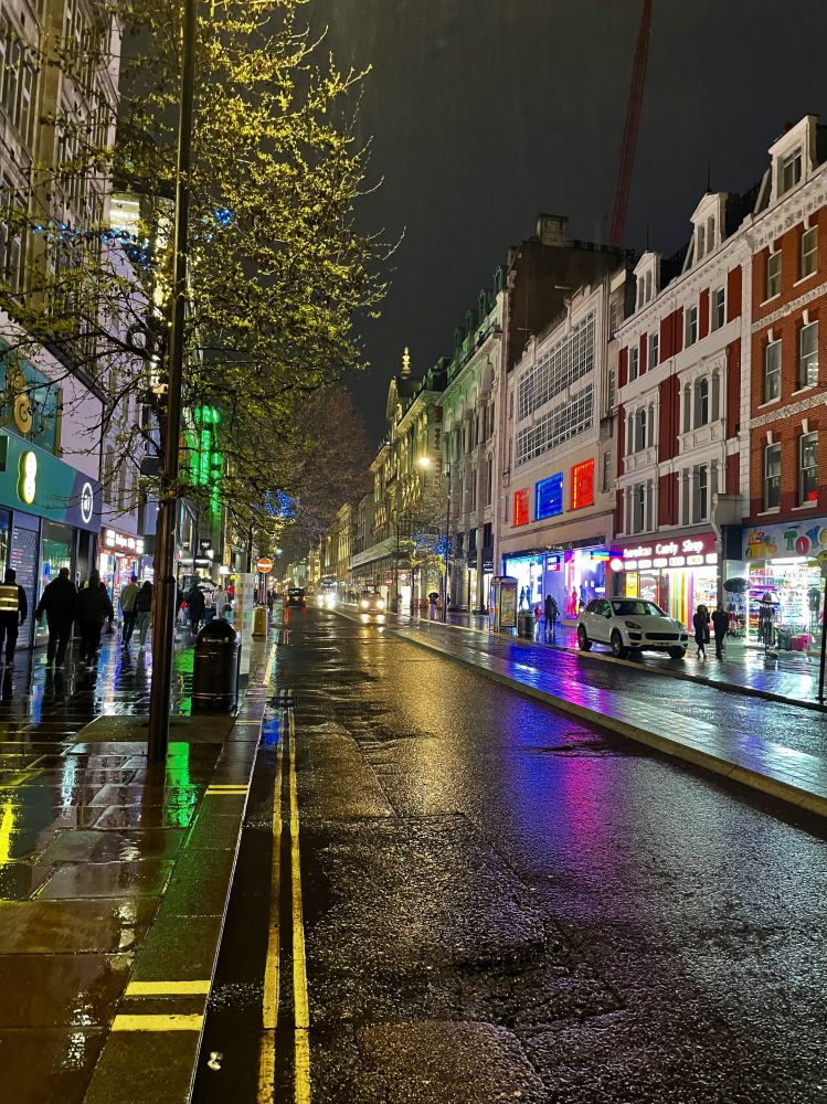 昨夜又是风又是雨。我在雨中走着,心情很舒畅。伦敦晚上的街道很热闹,商店都是9点以后才关门。没来伦敦前我总说我不喜欢阴雨天。这才来了一天多,我对伦敦的雨一点儿不讨厌!所以人不能太武断,要体验过后才说喜不喜欢!