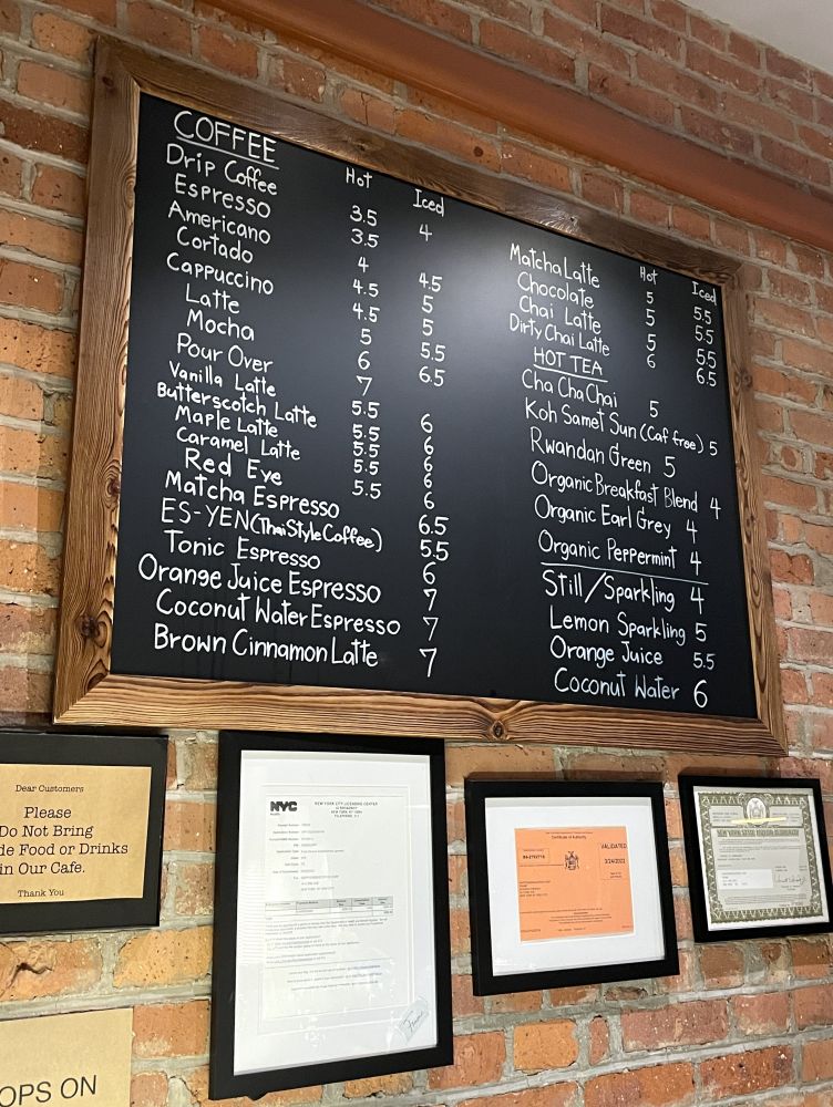 走回家的路上,正好收到外甥女的短信,告诉我我家附近新开了一家酒馆加咖啡馆,她大力推荐。我一想大晚上的不能喝咖啡呀。不过正好路过,就先进去瞄一眼。结果就是坐下又吃又喝,还和掌柜的聊了半天。掌柜的是位泰国小帅哥,和他聊美国、聊纽约、聊泰国、聊中国,不亦乐乎。然后走进寒风里回家,晚饭也省了!
