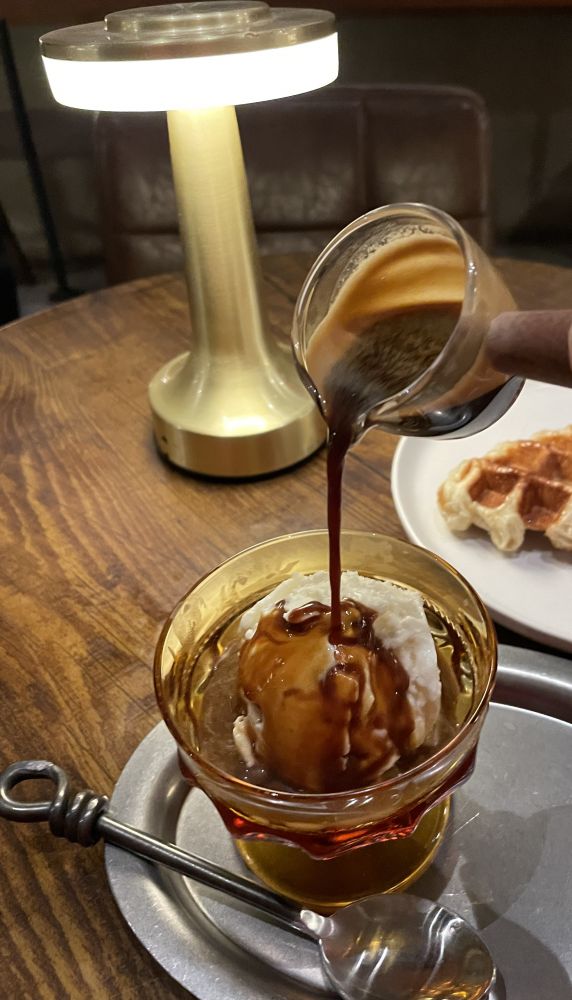 要了个冰激凌咖啡,一个华尔夫饼,加小费$15大洋。这要是在以前我是会舍不得的。但现在,我不再多想值不值的问题了,只要自己高兴!谁知明天会发生什么事!先享受了再说!