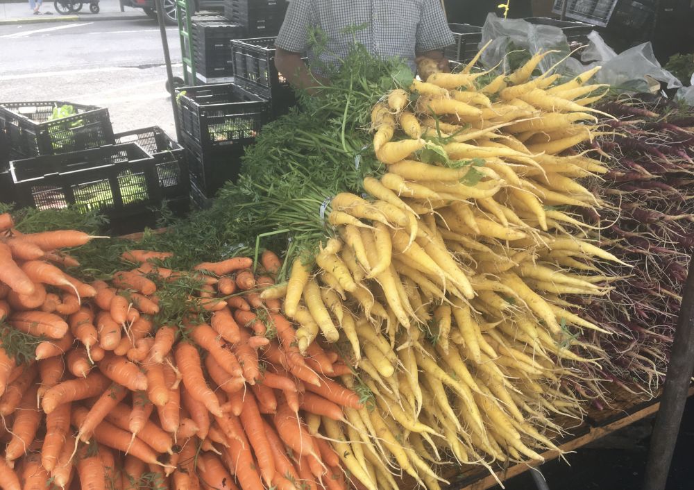周六,只要自己不犯懒(经常),上午就会去逛各个不同点的farmer's market, 纽约大都市,但farmer's market 发展的很好。曼哈顿我常去的三处:我家附近的上东区、14街联合广场、西面自然博物馆后面的WCP。最近因为常去外甥女那儿,她家附近的布鲁克林的集市也去逛了几次,特别好,有不少不常看到的东西。最有趣是和摊主聊天,可以学到很多关于蔬果、花卉的知识。集市上的东西都很新鲜,产自大纽约地区以及新泽西和宾州的一些农场。非常enjoy!逛完后提着一些新鲜蔬果回家,满心欢喜!
