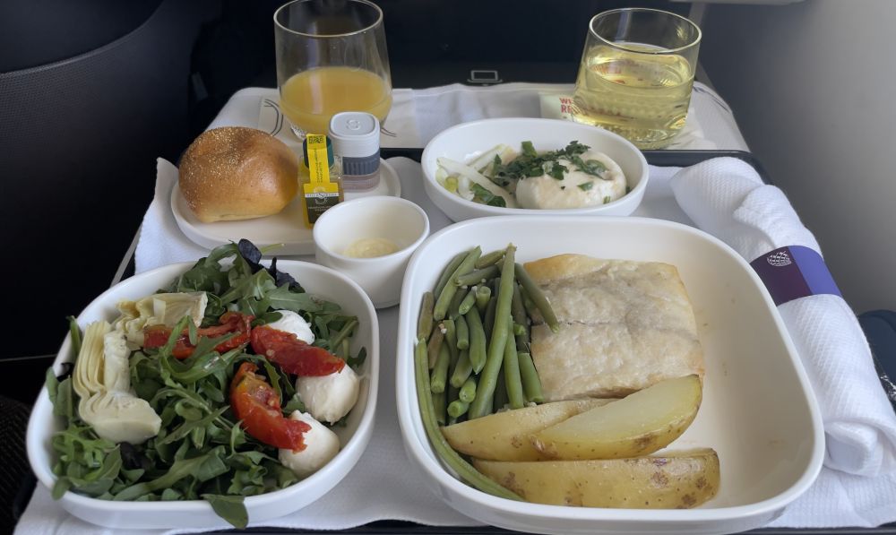 昨天六个多小时的飞行,从纽约来到洛杉矶。一路飞行,居然供应两餐,再加甜点。飞机餐,果腹而已: