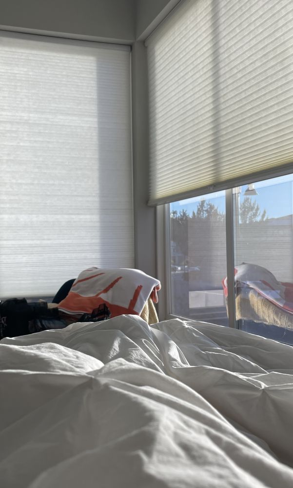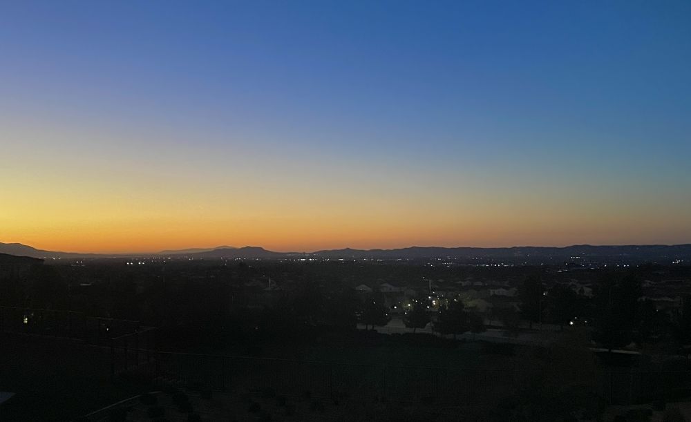 今一早太阳还没升起,就醒了。躺床上等日出: