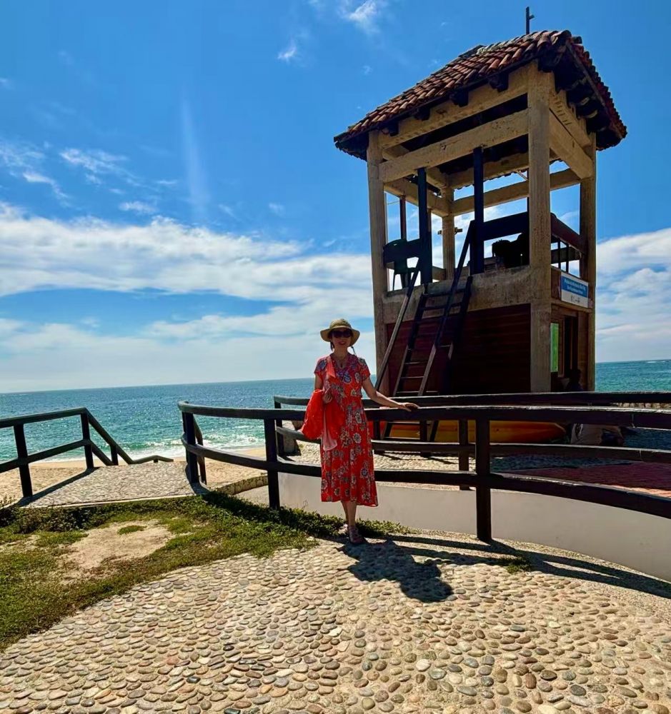 司机把我们准时送回码头,我舍不得离去,举着红伞在码头上游荡。见港仔也迷茫着,我们就走进一家沙滩上的餐厅。在这里,我尝到了一生最好吃的墨西哥Taco!它是新鲜鱼肉与牛油果合作的美味,外加一大杯马戈瑞达鸡尾酒!终身难忘!