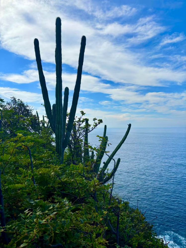 司机厚道多停了一个港湾,我爱大海,每一个沙滩都有它特殊的风采。只是时间不够。这种走马看花的旅游就像写着一本书的目录,下次再来细读。我们那艘万吨游轮居然静卧在山崖翠绿树木怀中!这种“离谱”的画面,今生难得难忘!