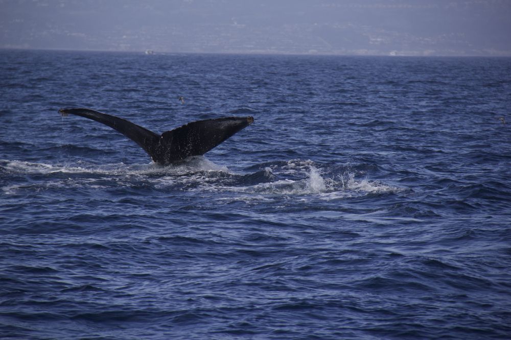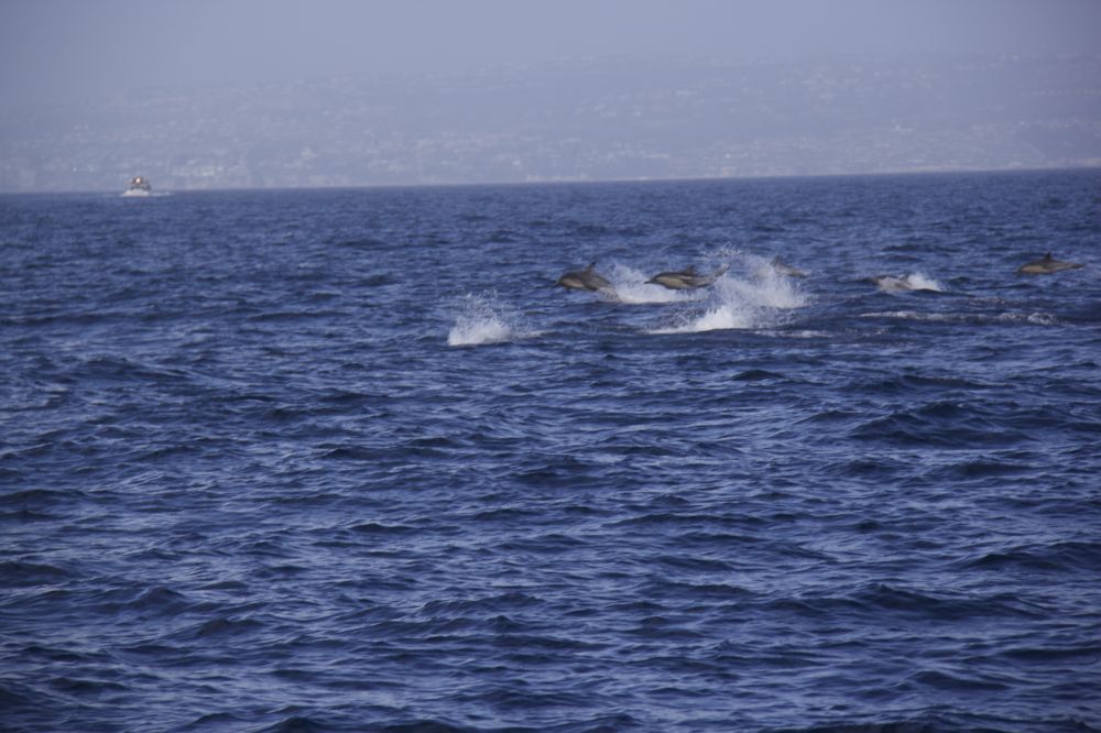 2 成群的海豚在赛跑 都说神龙见尾不见首,我是只见到大鲸鱼的尾巴了。 鲸鱼妈妈带着她的宝贝 一叶帆船。。。。