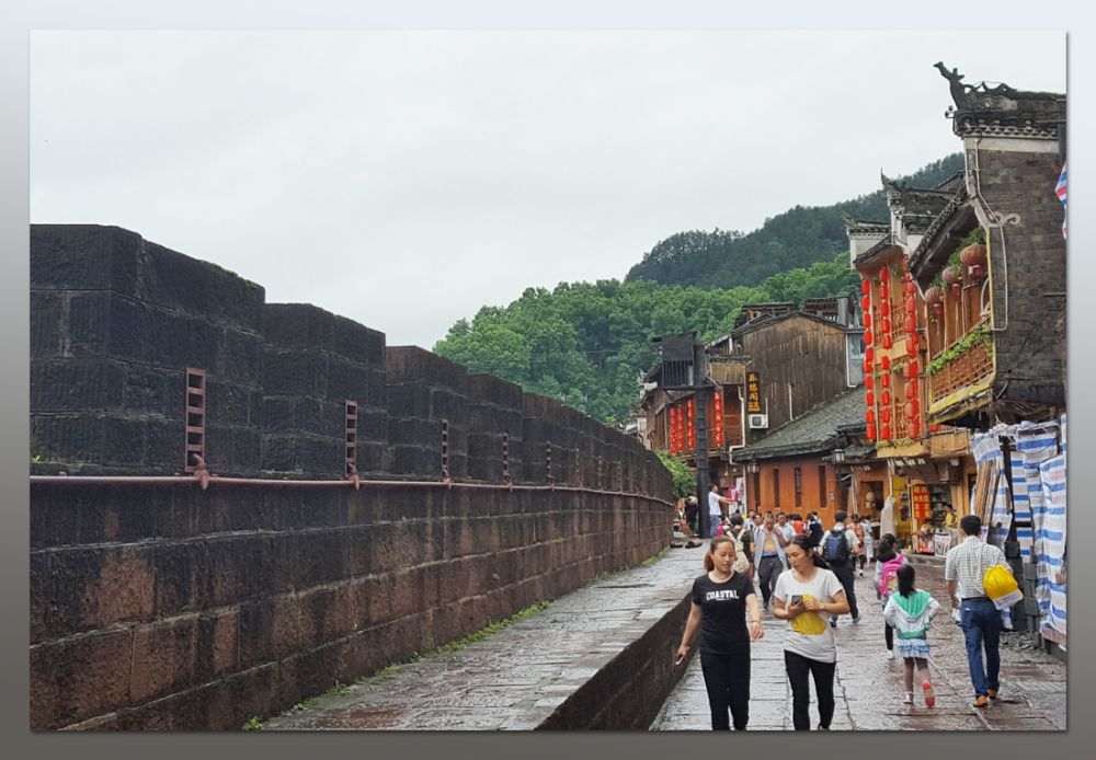 走过了跨越沱江的虹桥,就到进入了凤凰熙熙攘攘的主城区了。在这座经历了几百年风雨沧桑的古城,东门城楼和北门城楼尚存,爬满青苔的斑驳里,淤积了多少沉重的历史?又见证过几番小城的起落兴衰?朝阳宫,天王庙,万寿宫,大成殿风采依旧,厚重威严的大门内,写着多少古城的传说?