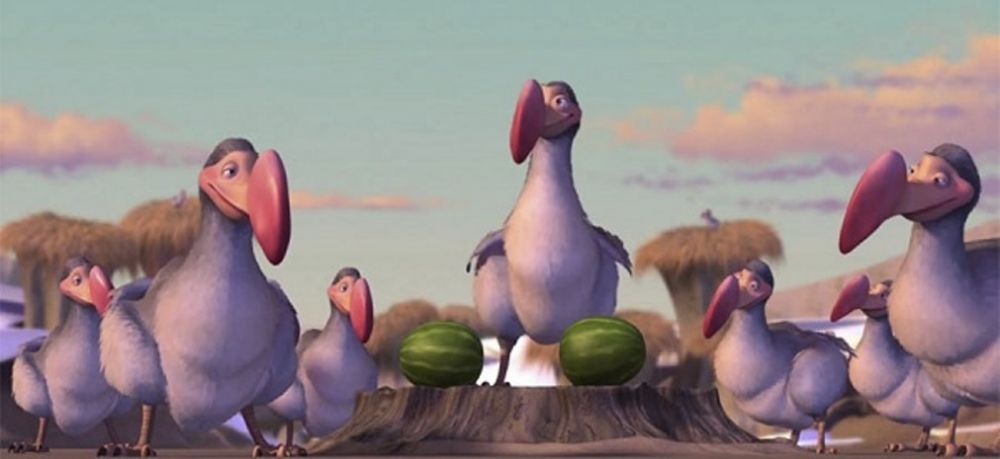 情节到这里,这个影片中的所有渡渡鸟,除了留下一些丑陋和参差不齐的杂羽乱毛外,已经一只不剩地全部灭绝了;而毛象一行,在没有任何人员伤亡和损失下,而成功夺得和占有到了西瓜……