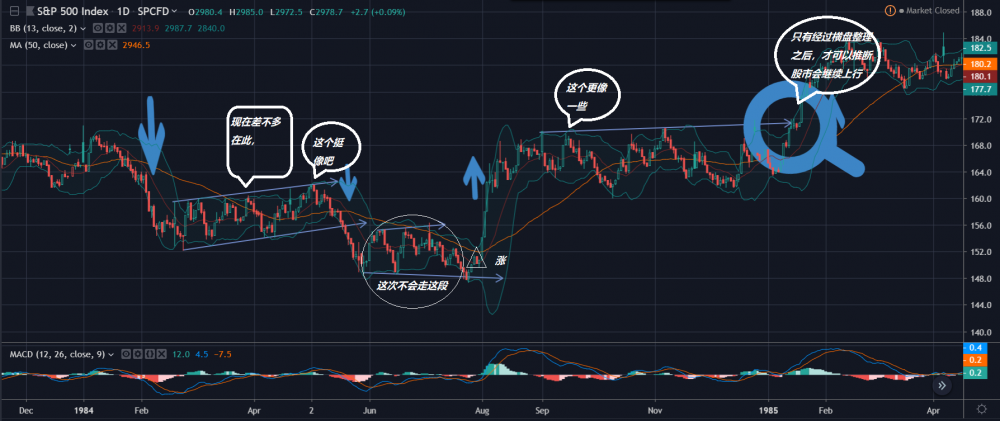 别跟我说SPX也有跳空三次继续往上走,那不是在箱体, 箱体要填实了才有根基向上的。