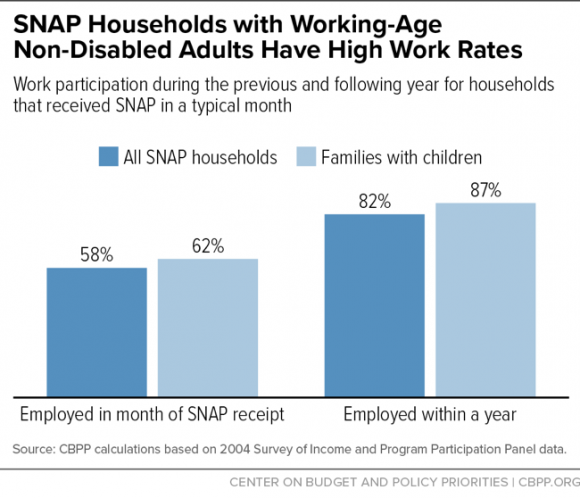 1. 到底领取福利的人会不会去工作: 下图说明, 60%左右的家庭在领粮食券当月找到工作,82%到87%的家庭在一年内招到工作。 说明绝大部分领粮食券的人是积极找工作的,而且还是成功的。