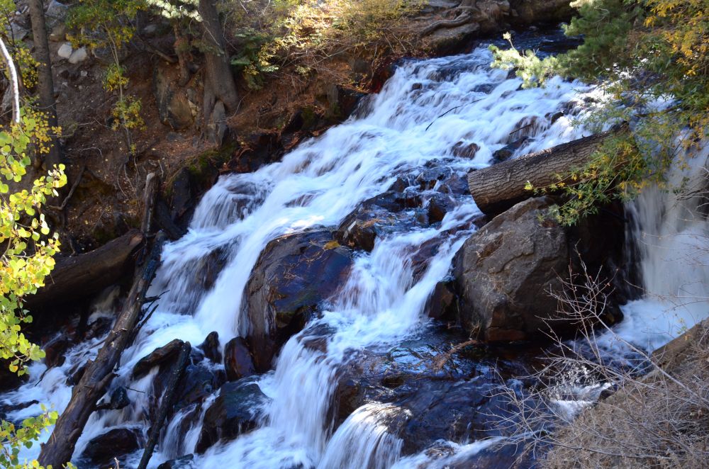 Sonora Pass是淘金热的时候拓荒者翻山越岭跋涉到西部的路线。如今的标准公路当年必定只是崎岖小路。行到半途我忧虑起晚上的住宿,问老公实在不行能不能夜间开车回家。老公颇为犹豫地答,这条路比优胜美地更难开。看来必须叉掉这个选项。我于是展开憧憬:我要住在水边。