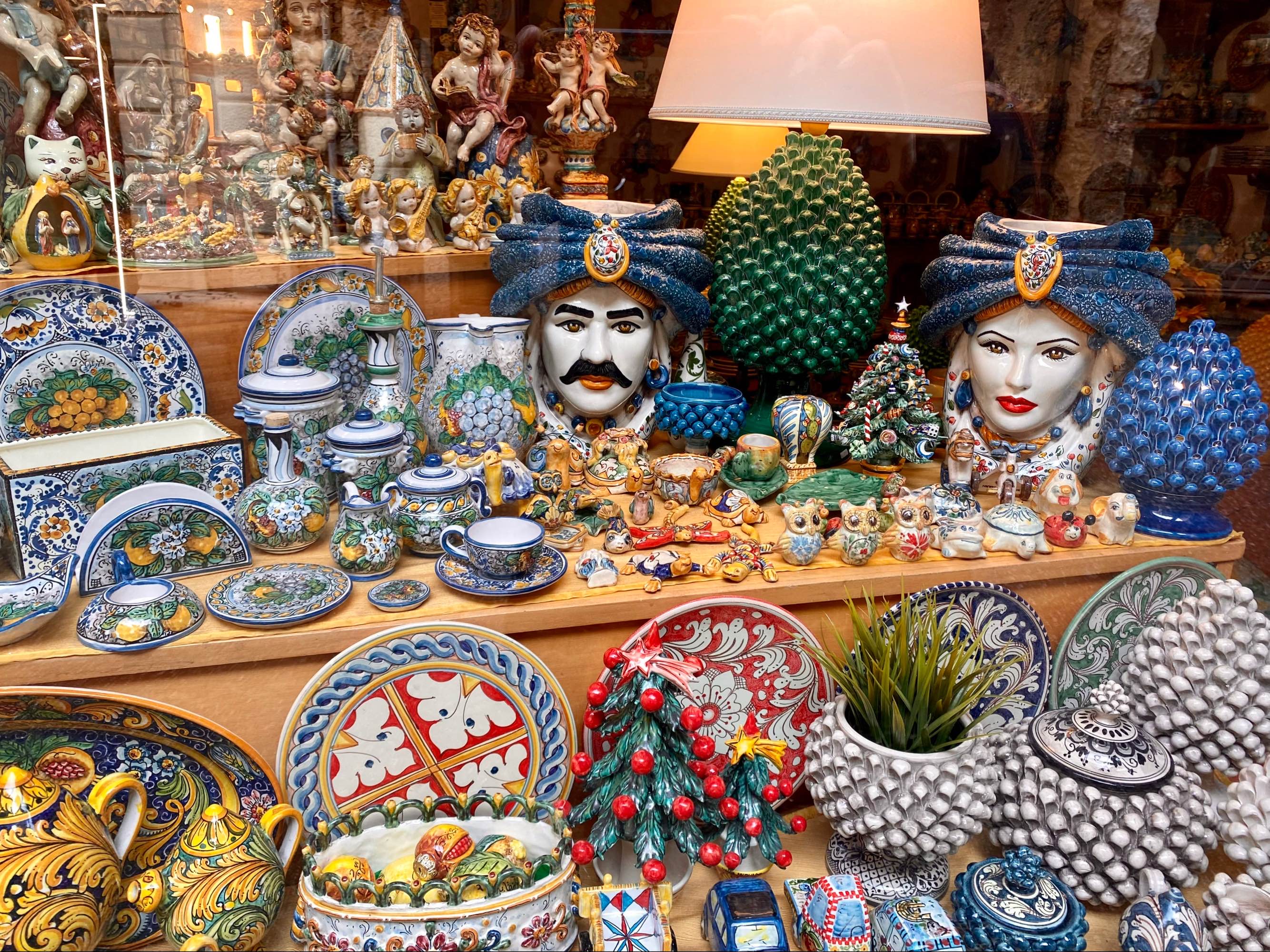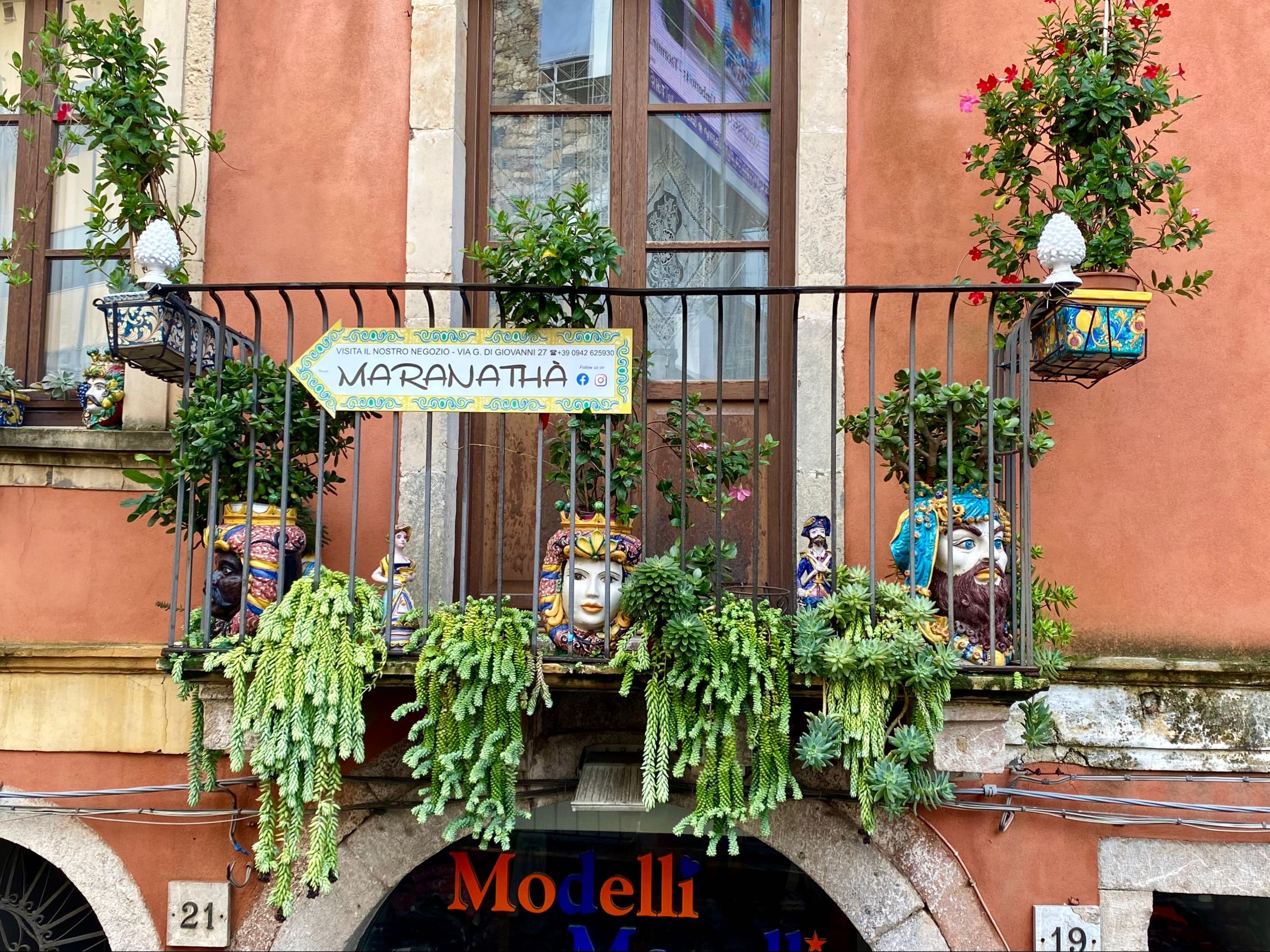 陶尔米纳另一个特色陶瓷就是摩尔人的头像的陶瓷花盆… 关于这种陶瓷花瓶的传说更有好几个不同的版本,反正都离不开爱情和暴力,总之就是把男人的头割下来做了花盆,花儿还长得特别茁壮、开得特别艳丽…