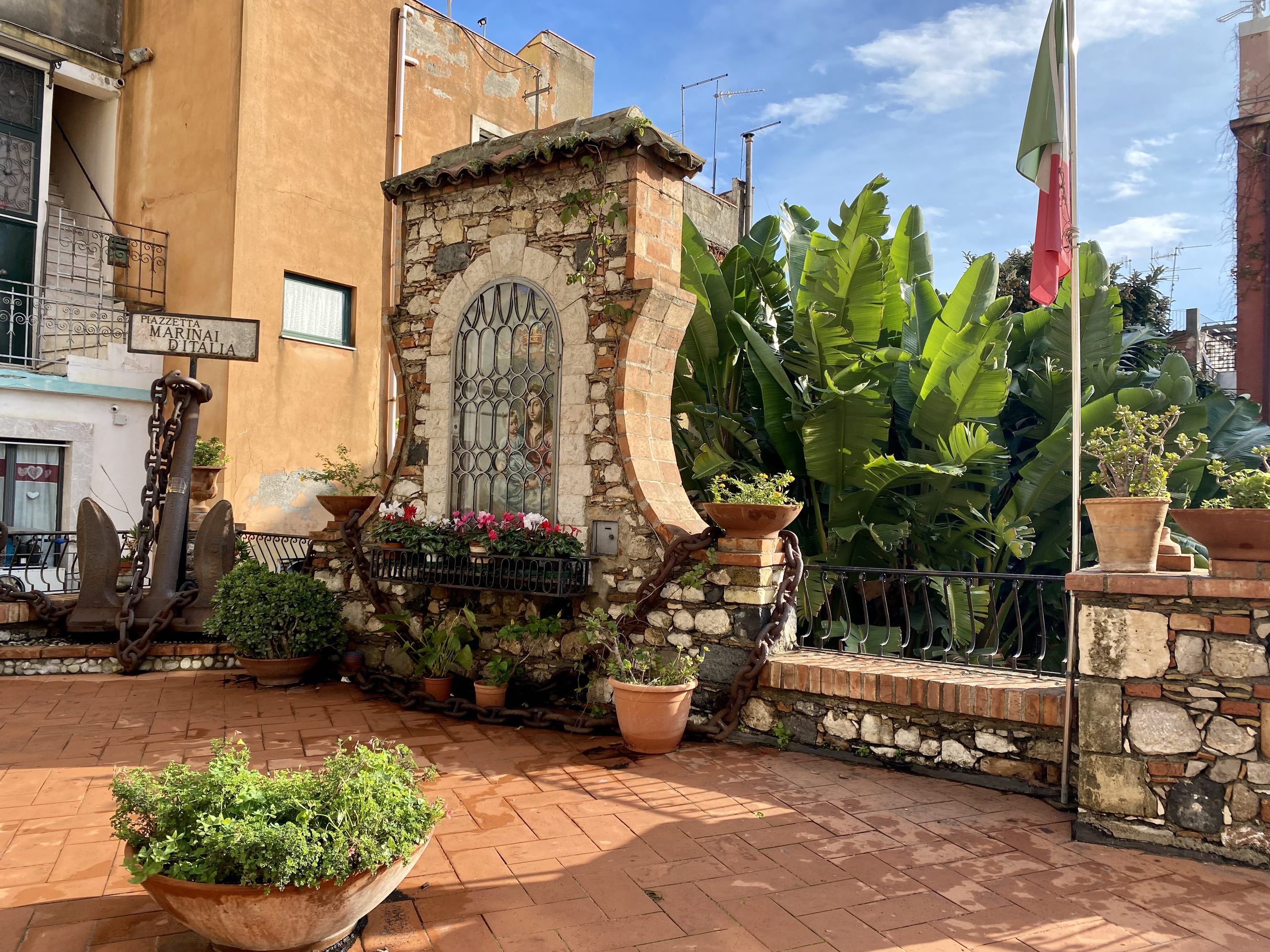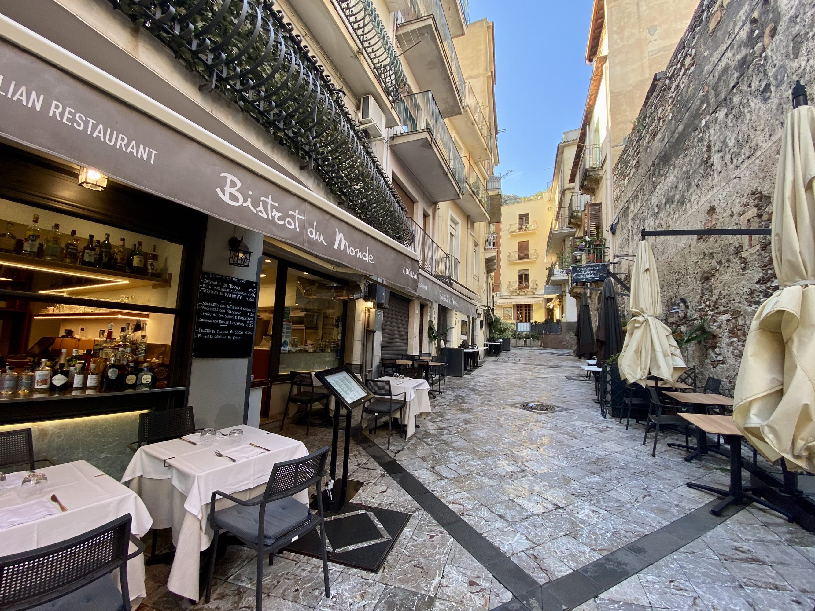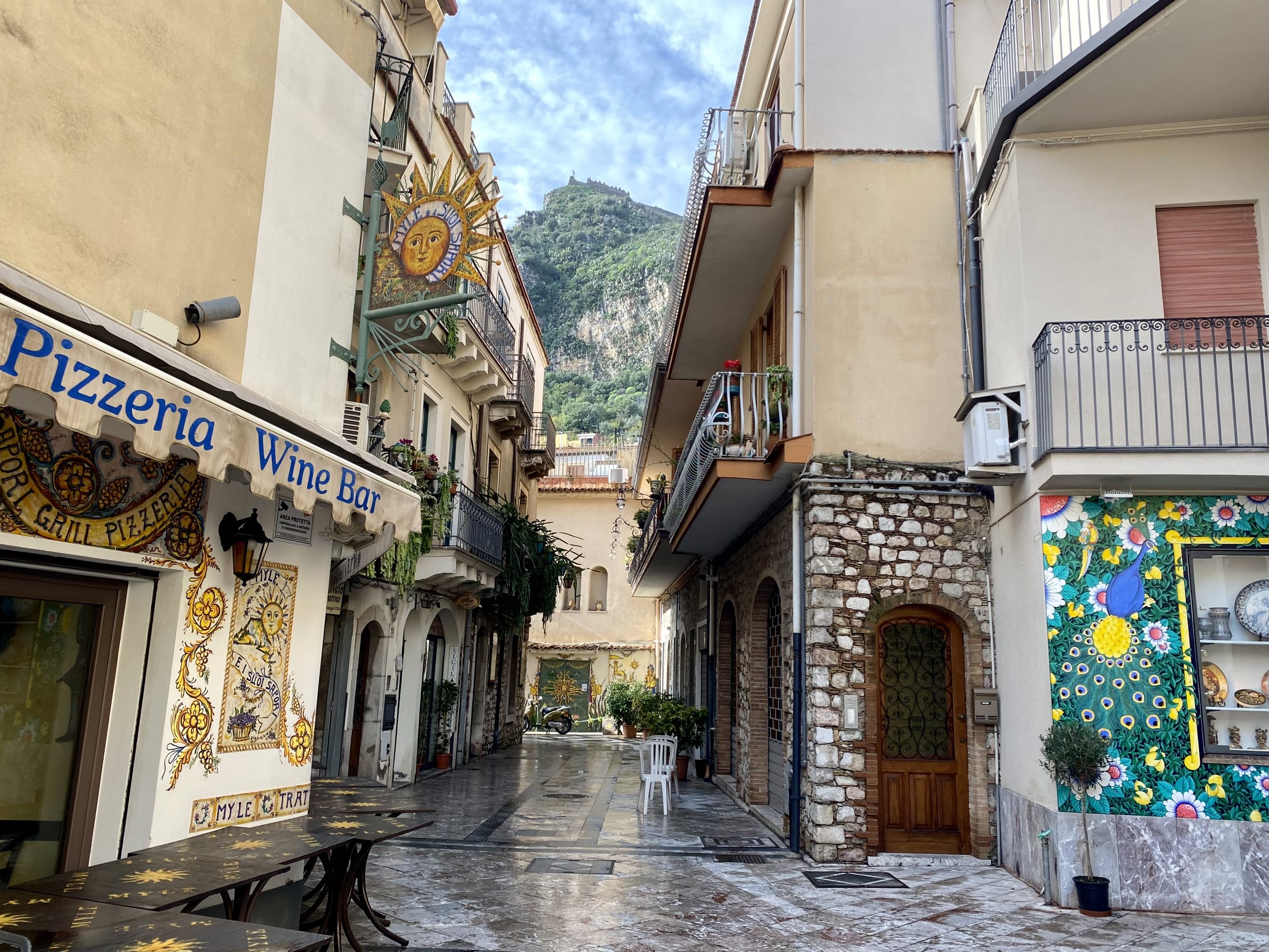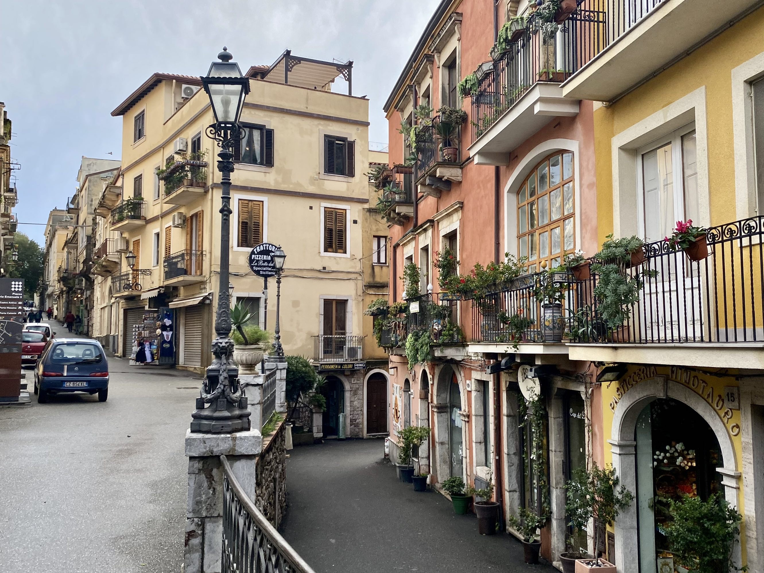 这次11月中旬来西西里感觉刚刚好,20度左右的气温,小镇上没了蜂拥的游客,感觉整个小镇都恢复到了当地人原本的作息时间和规律,到了半上午后本地人才开始出来活动,在街边小店里喝咖啡、吃早午餐,那些卖旅游纪念品的店铺大门紧闭,可以想象旅游旺季时的热闹与喧哗,却完全不影响我们享受在这样的小街巷里闲逛的兴致…