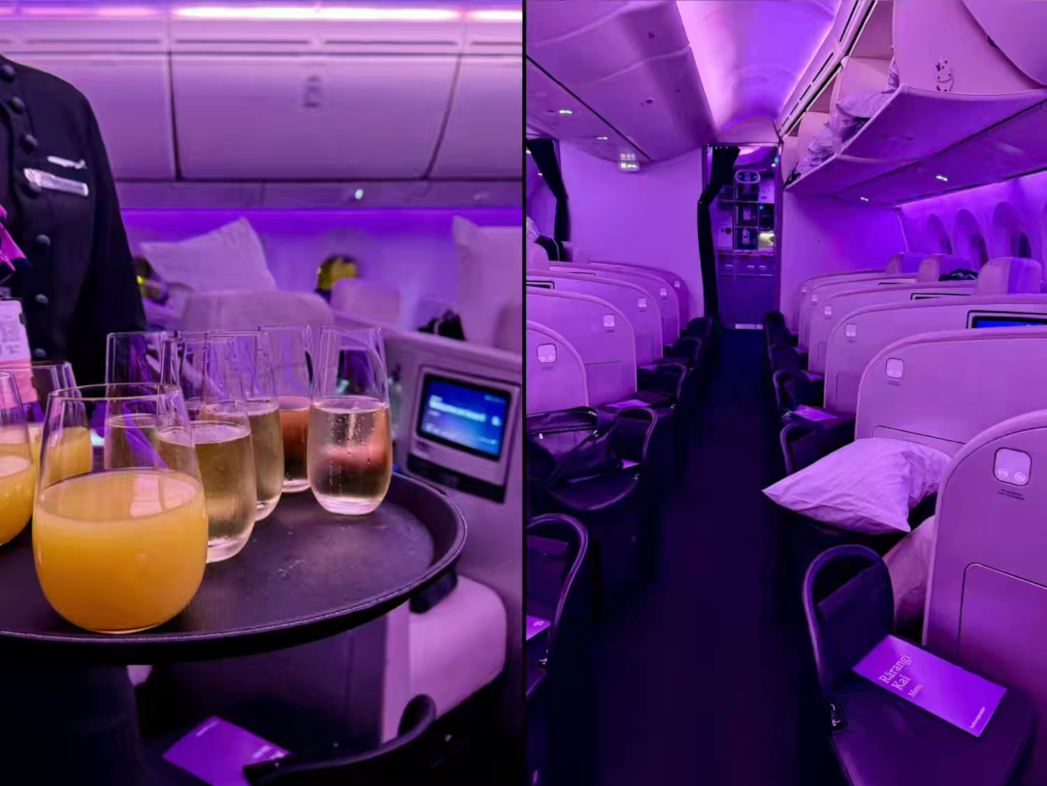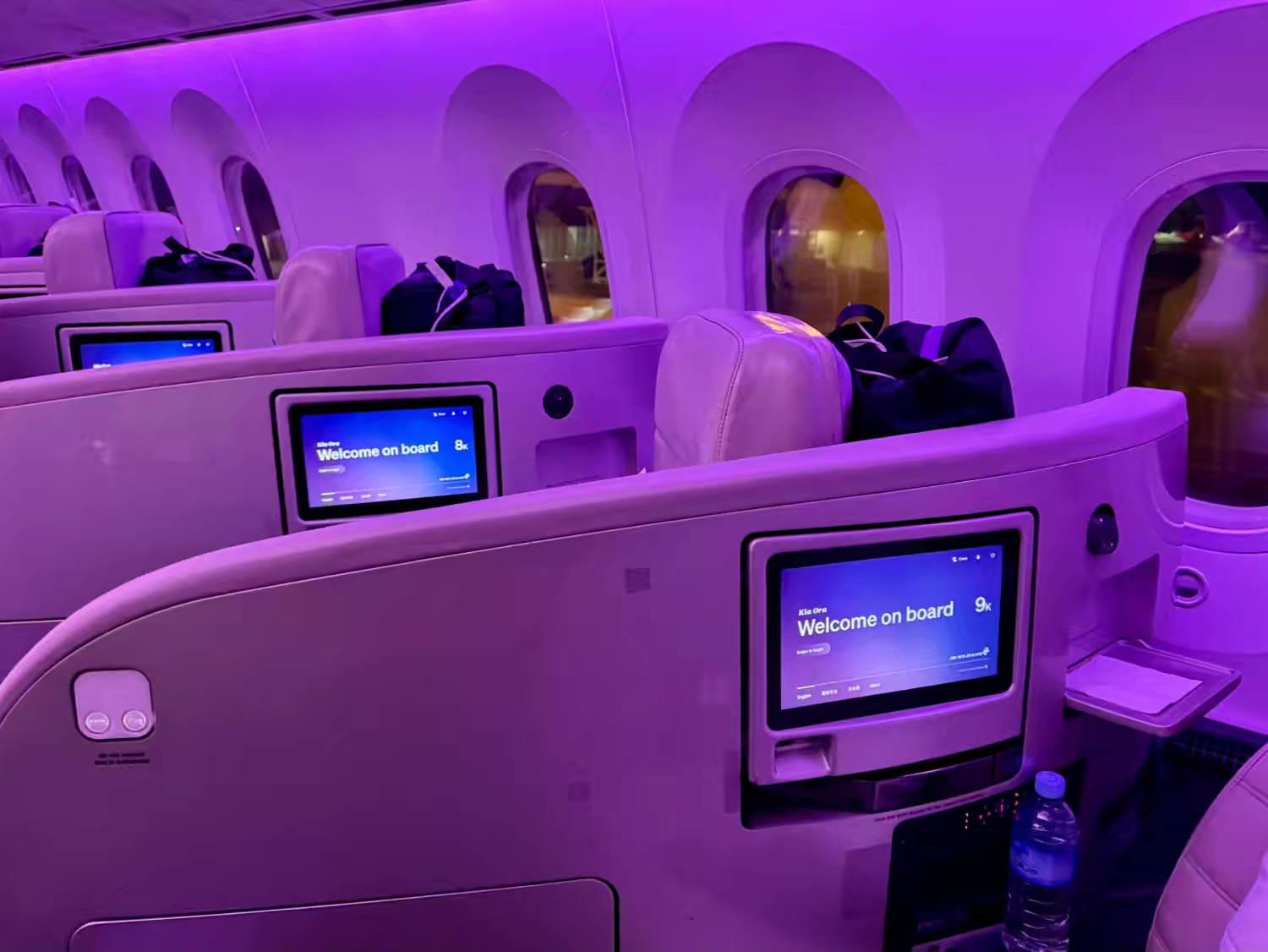 接下来登机后一路又是各种不停地被投喂,新航商务舱这个鱼骨式舱位布局,真是让人一言难尽,既缺乏私密性,进出座位又不方便,想平躺还得麻烦空乘帮忙铺床,关键最受不了的是一落座下来,放眼望去全是一排排陌生人的脚,那种感觉要真正坐进去才能有切身体会,而且那个靠窗的位置完全失去了靠窗的意义,因为整个是背对窗口的,连起身都不方便,真不知当初设计这种布局的人是怎么想的!