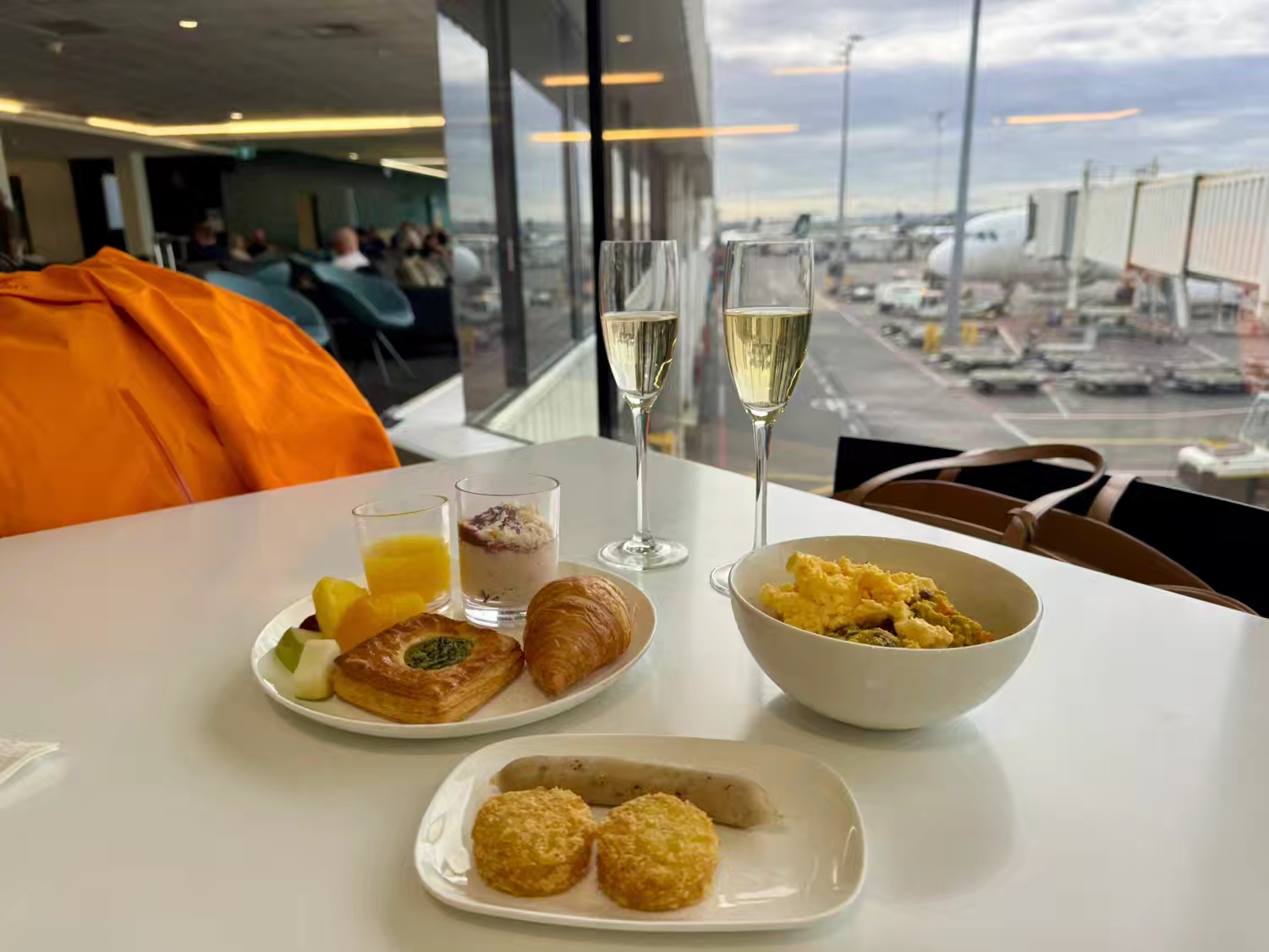 第二天睡了一个大懒觉,我们有足够的时间轻松地去机场,乘新西兰航空公司的航班飞往奥克兰,并把行李和滑雪装备直挂托运至皇后镇,新航在旧金山机场没有自己的贵宾室,商务舱乘客大多使用美联航的“北极星贵宾室” United Polaris Lounge,这个贵宾室规模不小,有Buffet,也有提供菜单式的点餐服务,整体水准还行,但我们还是更喜欢加航的那个 Signature Class Lounge~