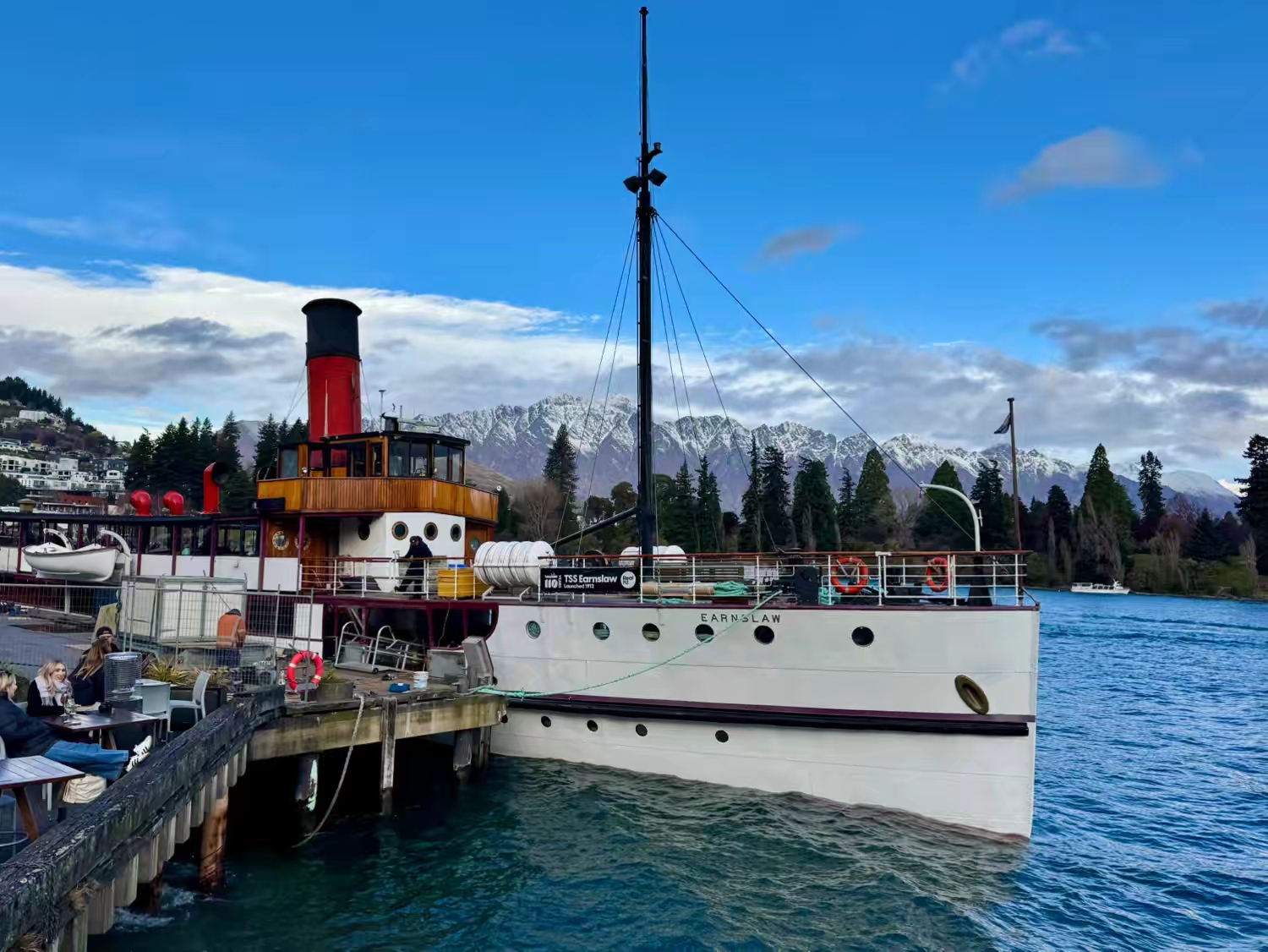 皇后镇依偎在壮丽的 瓦卡蒂普湖(Lake Wakatipu) 之畔,四周雪山环抱,远处的山峰依旧覆着白雪,而近处的湖水蔚蓝如海,漫步湖滨码头,既能感受到雪山的静谧,又能体会到湖面的张力与力量,美得令人心醉~