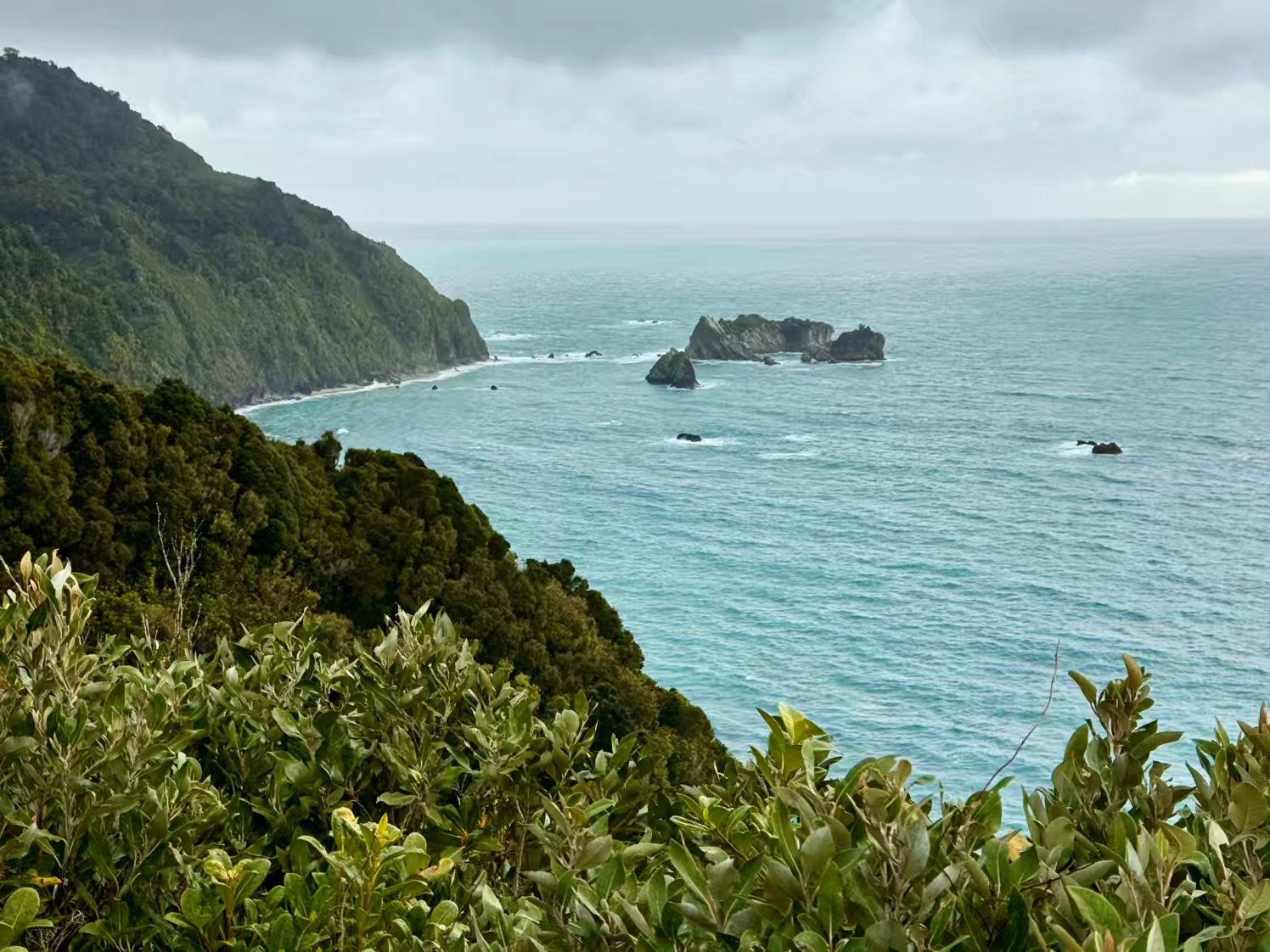 另外顺便说一句,印象中好像有 “南岛环岛一定要逆时针走,西海岸那一段才更美”的说法,可是新西兰是靠左行驶,我觉得逻辑上有点说不通呀,所以我们还是按顺时针来进行环岛,实际走下来,我们的感受却恰恰相反,反而觉得在西海岸这一段顺时针行驶更舒服、也更好看,正是因为靠左行,顺时针走的时候车子正好贴着海岸线,视野更开阔,绝大多数景点都在左侧,也更方便随时靠边停车拍照,相比之下,如果逆时针行驶,反而常常隔着对向车道,停下来就没那么直观和方便了。所以至少以我们的实际体验来说,西海岸这一段,顺时针走反而更合适…
