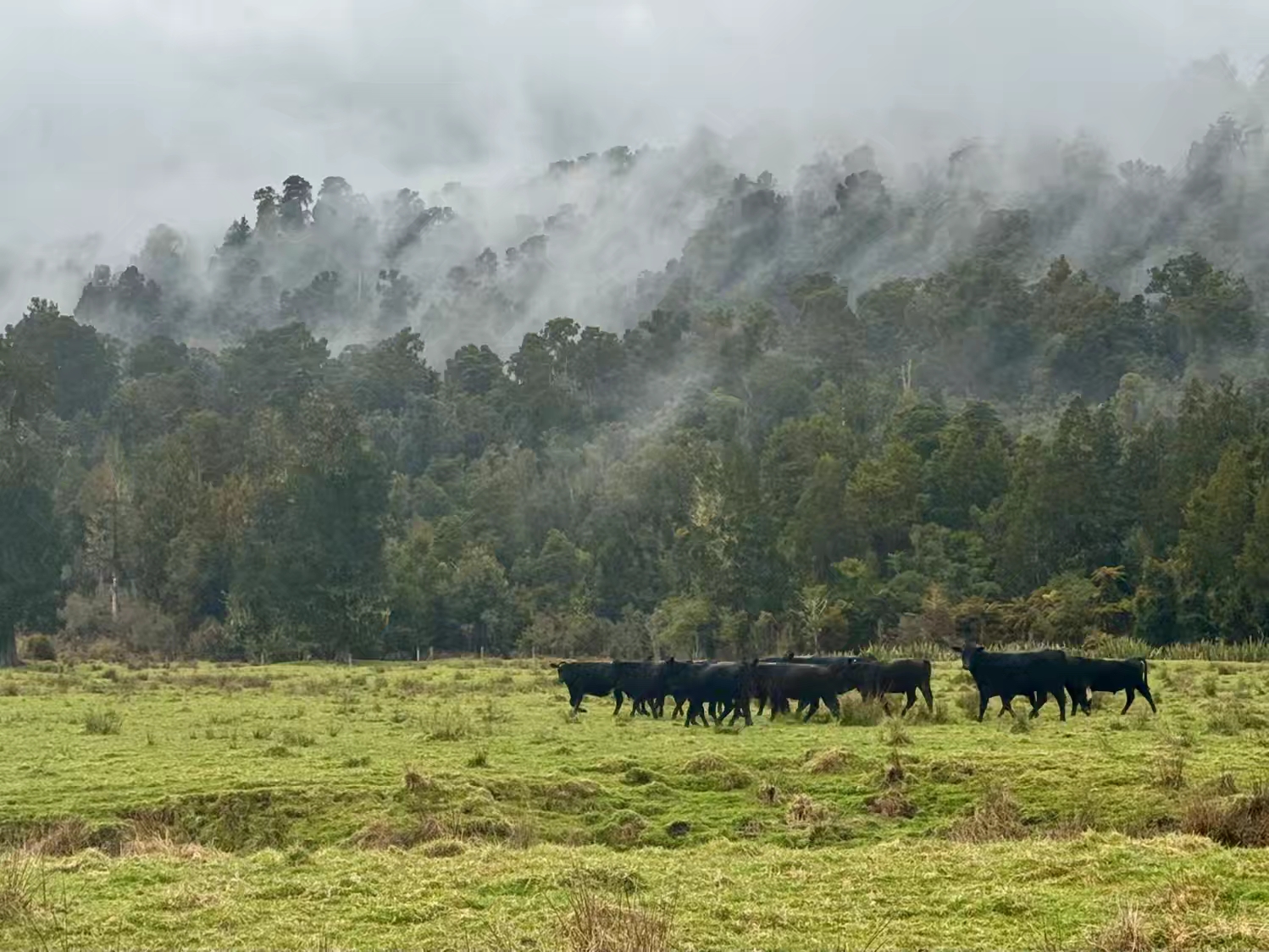 特别是新西兰这种通体发黑的奶牛,不知道为什么特别吸引我们,它们在草地上成队地走着,黑色的身影在灰白的雾气与绿色的草地之间移动,看着竟然有点像动物大迁徙的场景,太喜欢这个画面了,隐约透着一种国画般的美~
