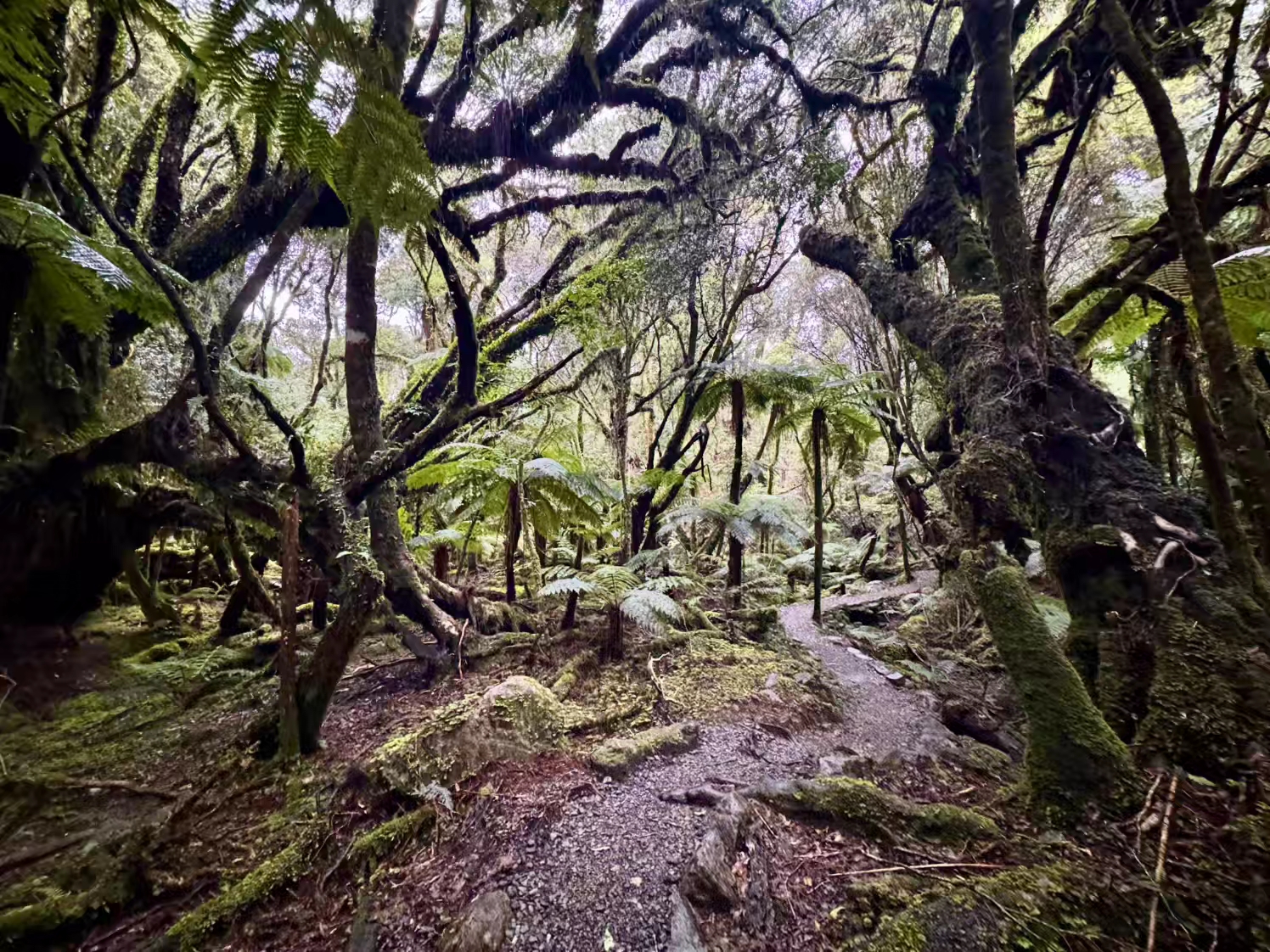 话说西岸的那几天虽然碰上了阴雨天,却也见识了南岛热带雨林般的景色,在山里徒步仿佛在寻找绿野仙踪的足迹,南岛西岸原本就是全球雨量最多的地区之一,每年有超过200多天都在下雨,跟夏威夷的可爱岛有得一拼,而且漫山遍野都是新西兰特有的,源自恐龙时代的植物“银蕨”(Silver Fern),这次才得知,新西兰标志性的银色蕨类植物叶子,还真的就是银白色的,把这种银蕨的叶子翻过来,它的背面就是银白色的~