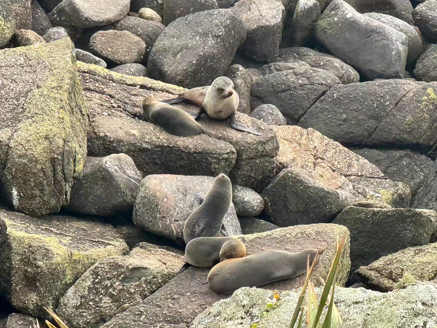 离开灯塔我们又来到了本次旅程的最西北端 — Cape Foulwind Seal Colony Lookout。这里是南岛看海豹的最佳观看点之一,岩石缝间满是慵懒嬉戏的海豹,小小一方天地却充满生命的气息,经管狂风大作,我们还是在这里饶有兴趣地看了许久才意犹未尽地离开…