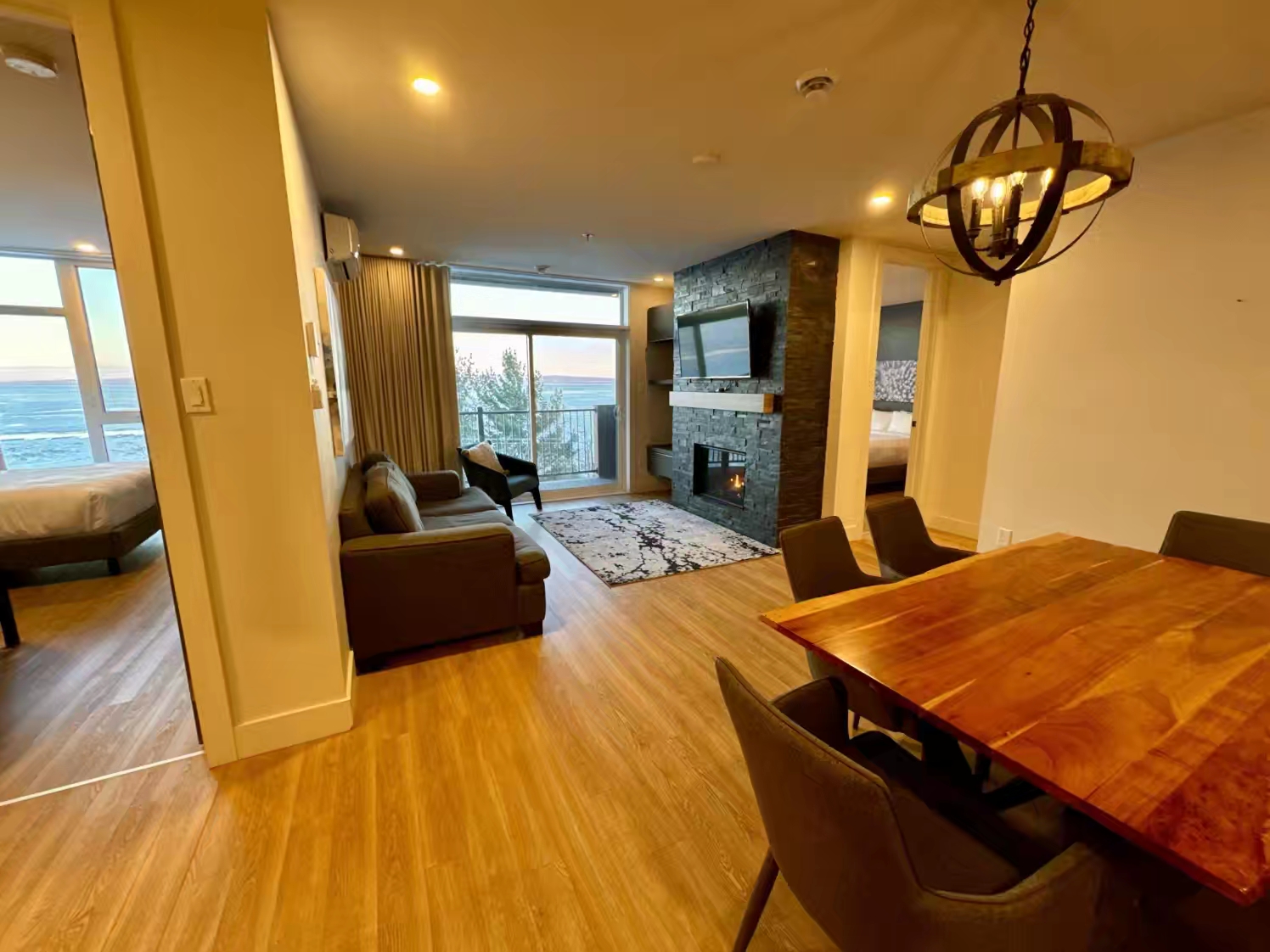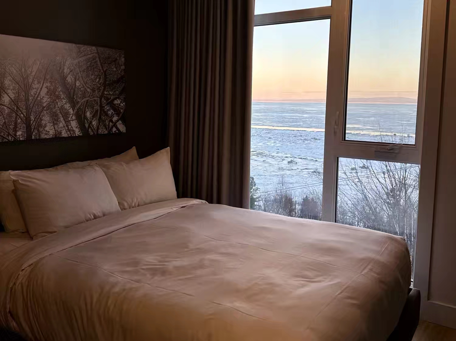 而且无论客厅还是两个卧室,都拥有圣劳伦河的无敌水景,每天最美的时刻就是日出和日落时分…