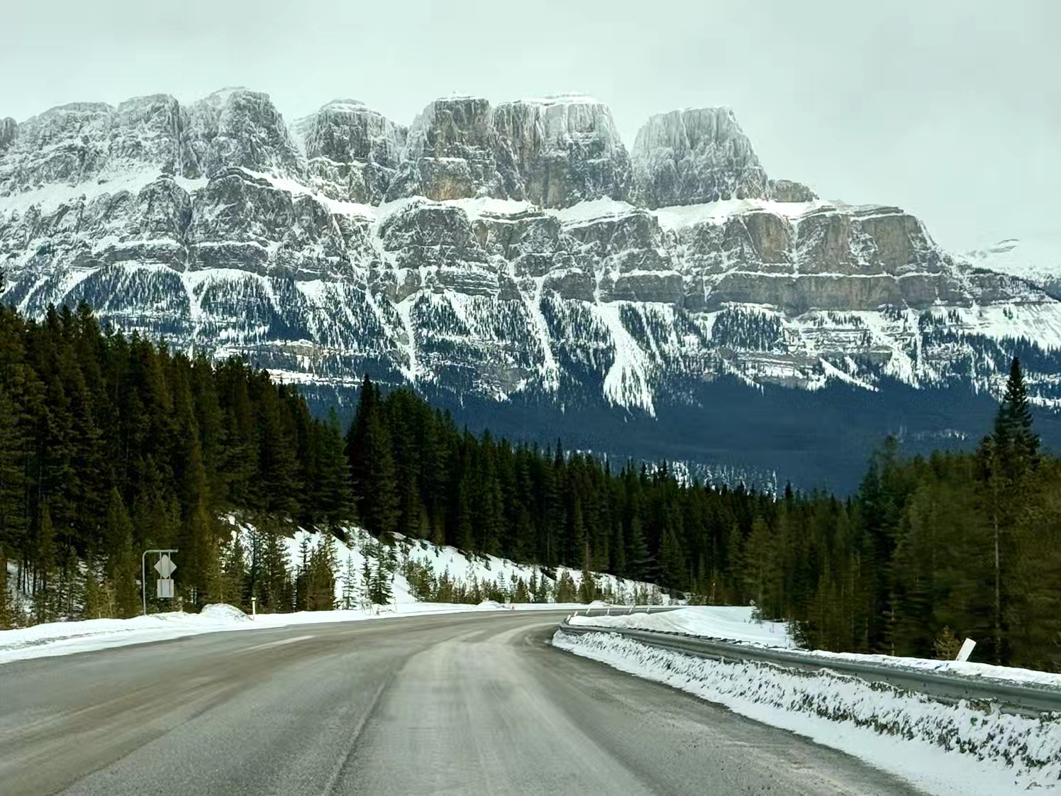 最后一天收拾好行李和滑雪装备,驱车离开 Panorama 雪场,开始从 BC 省返回阿省,好在那周没有雪崩隐患,一路畅通无阻,再次穿过 Banff 国家公园,又再次被落基山的雪山、冰川和岩壁所震撼~