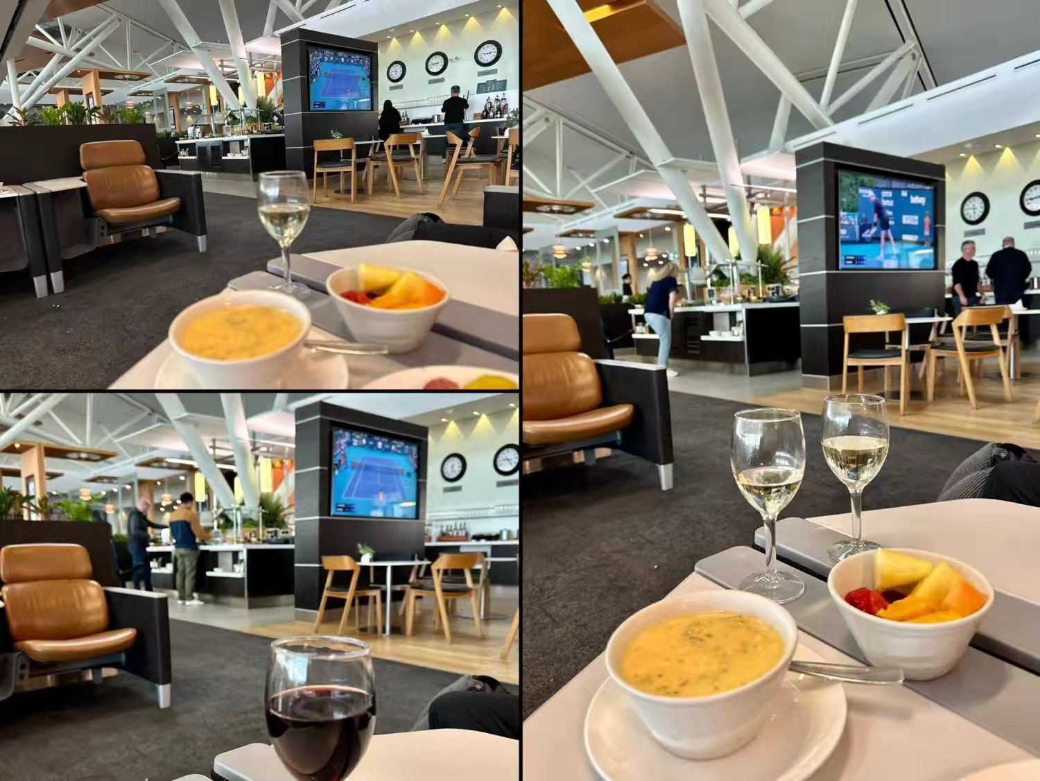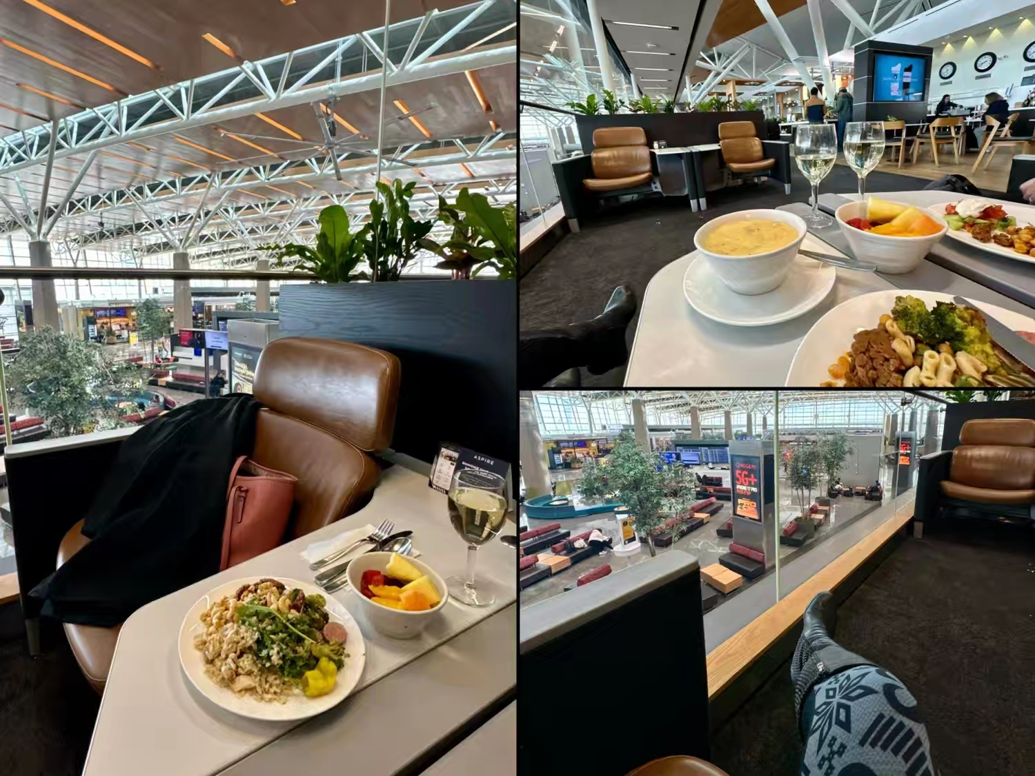 抵达机场顺利把车完璧归赵,这次自驾连同之前绕去 BC省南部,一共刚好两千公里。LD又一次出色地完成驾驶任务!不过在他看来,相比我们之前在阿拉斯加、巴塔哥尼亚、新西兰那些动辄三五千公里的房车旅程,这次算轻松的了,但还是值得点赞一下,于是一进到商务舱休息室,就先来两杯开胃酒庆祝一下… :)