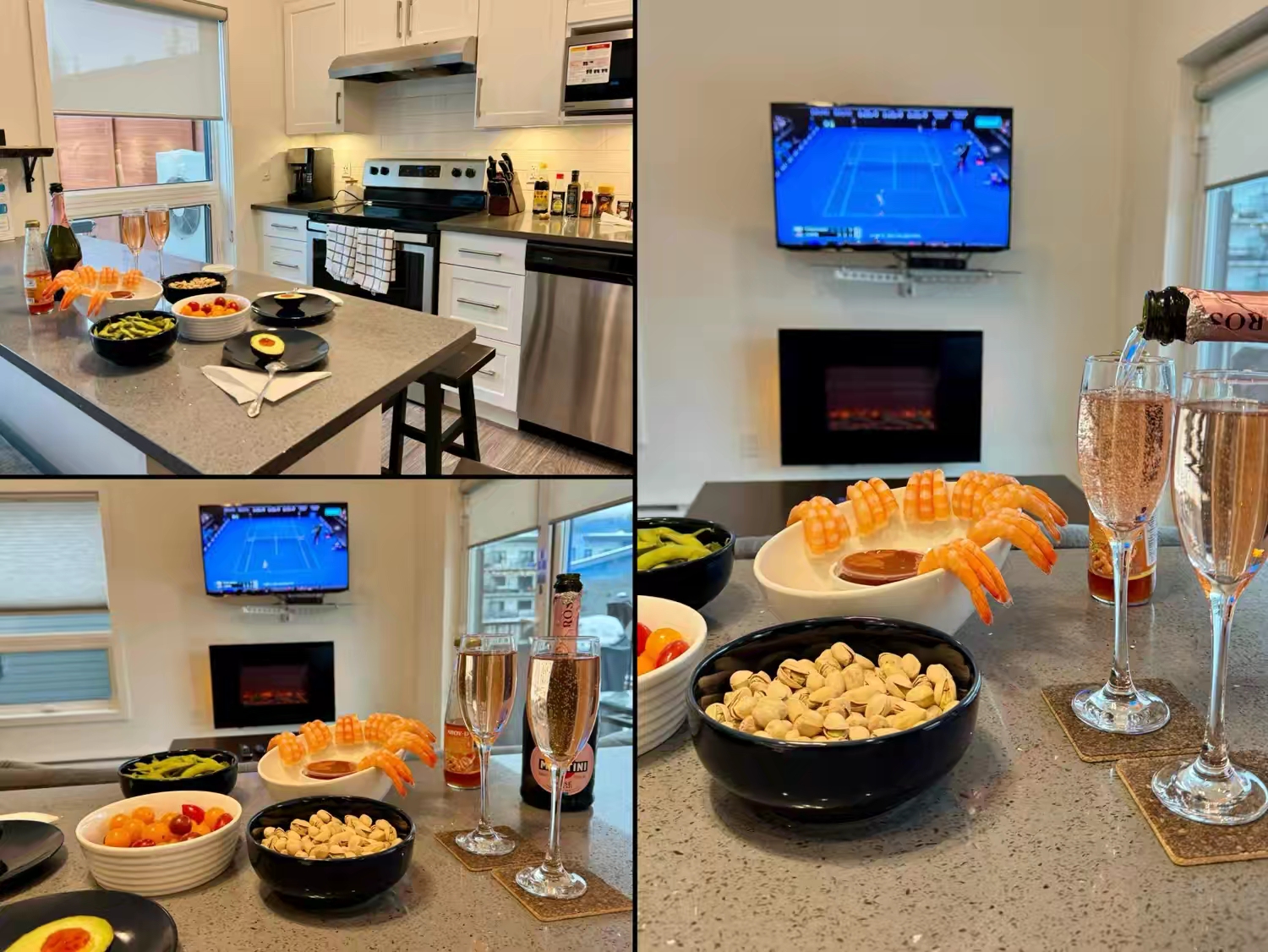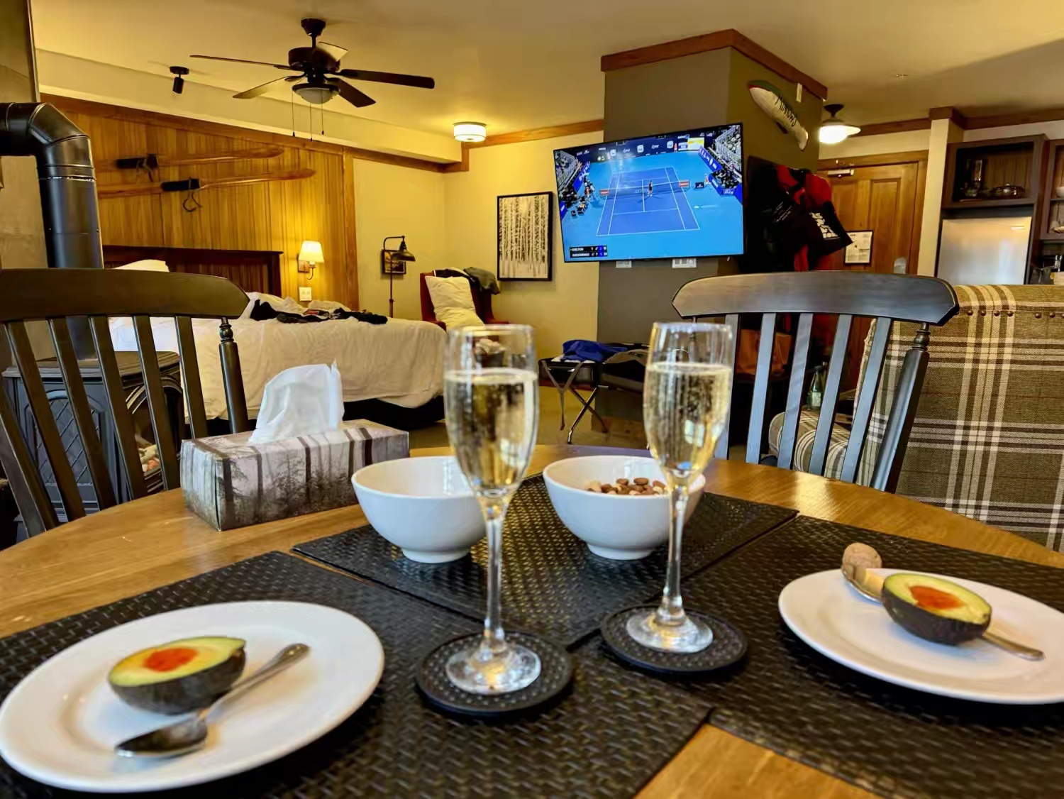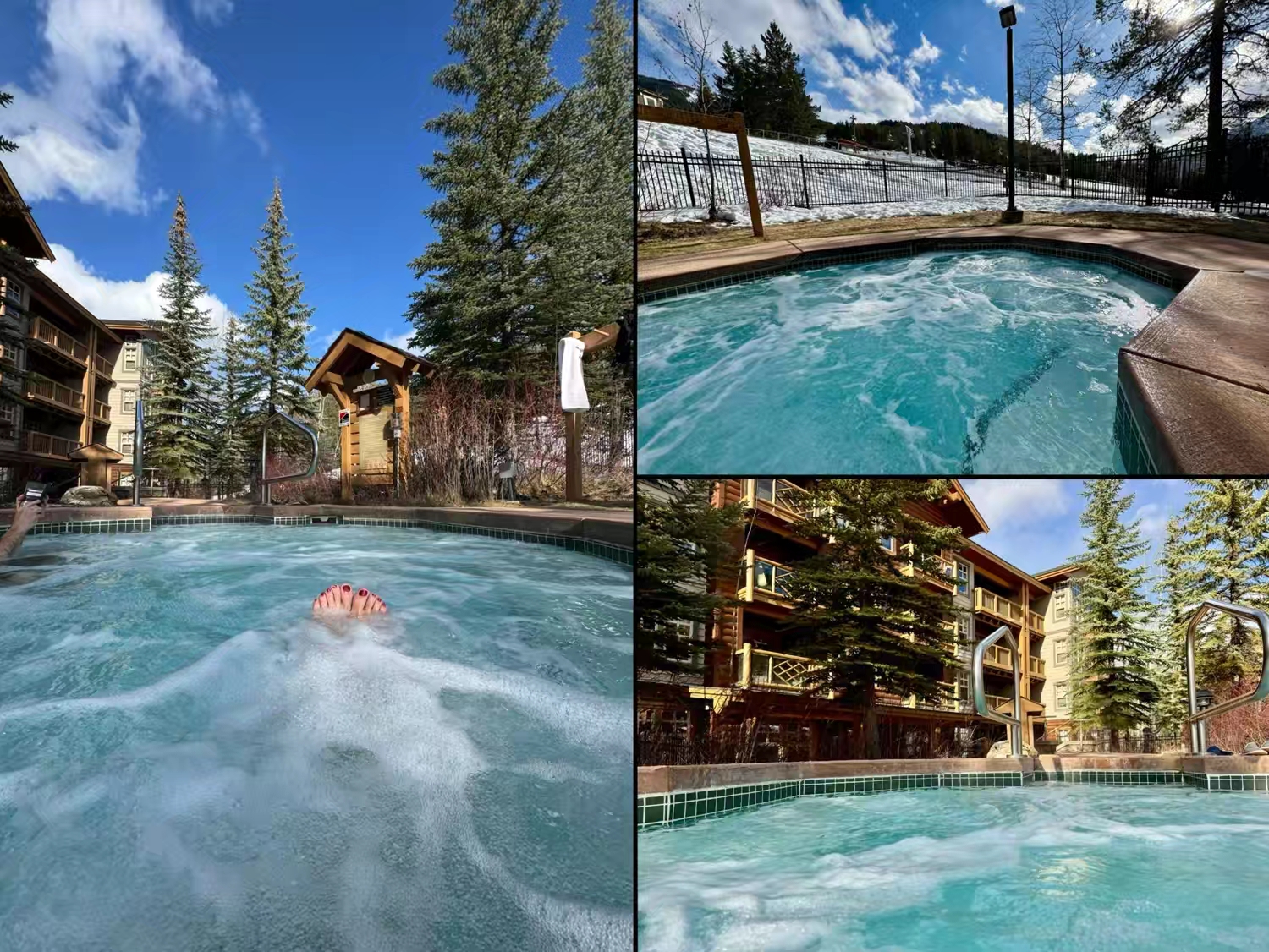 而滑了一整天的雪,回度假村第一件事就是在房间门口泡Spa,然后回房开香槟,看迈阿密网球大师赛直播,这才是我们理想中的滑雪人生 :)