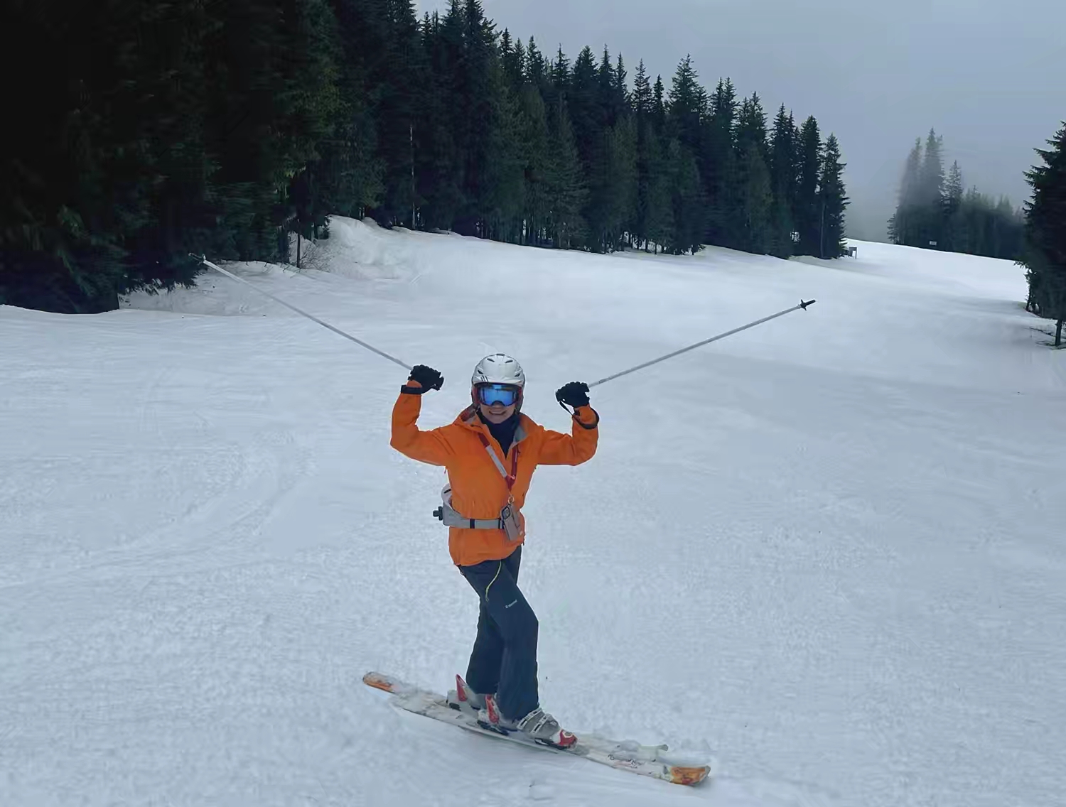 那几天不仅碰上了连续的云雾雨雪天,而且一天比一天差,最后成了每天都像是在水墨画中滑烂雪,哈哈!好在这次还带了防水的冲锋衣,也算派上了用场~