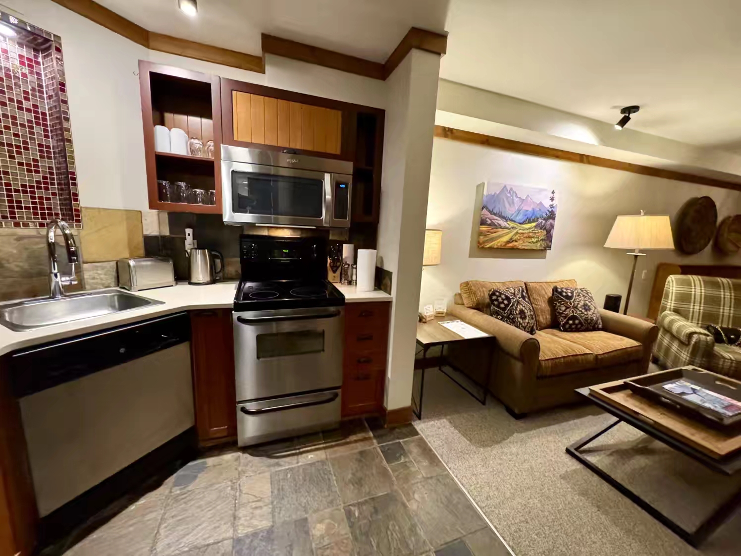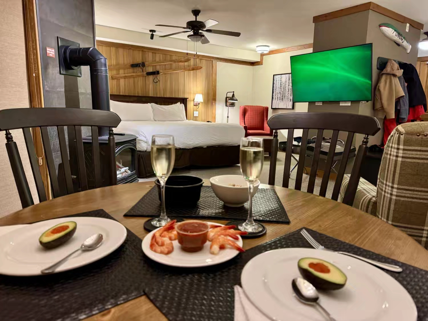 当晚入住的Hilton这家Ski-in/Ski-out度假公寓,是我们本次落基山滑雪之旅,继露易丝湖那家Fairmont酒店之后,我们最满意和喜欢的酒店,不仅颇有阿尔卑斯山木屋的风格,空间也很大,关键是那个无敌的地理位置,真的是距离雪道不能更近了,一出门就能直接开滑…