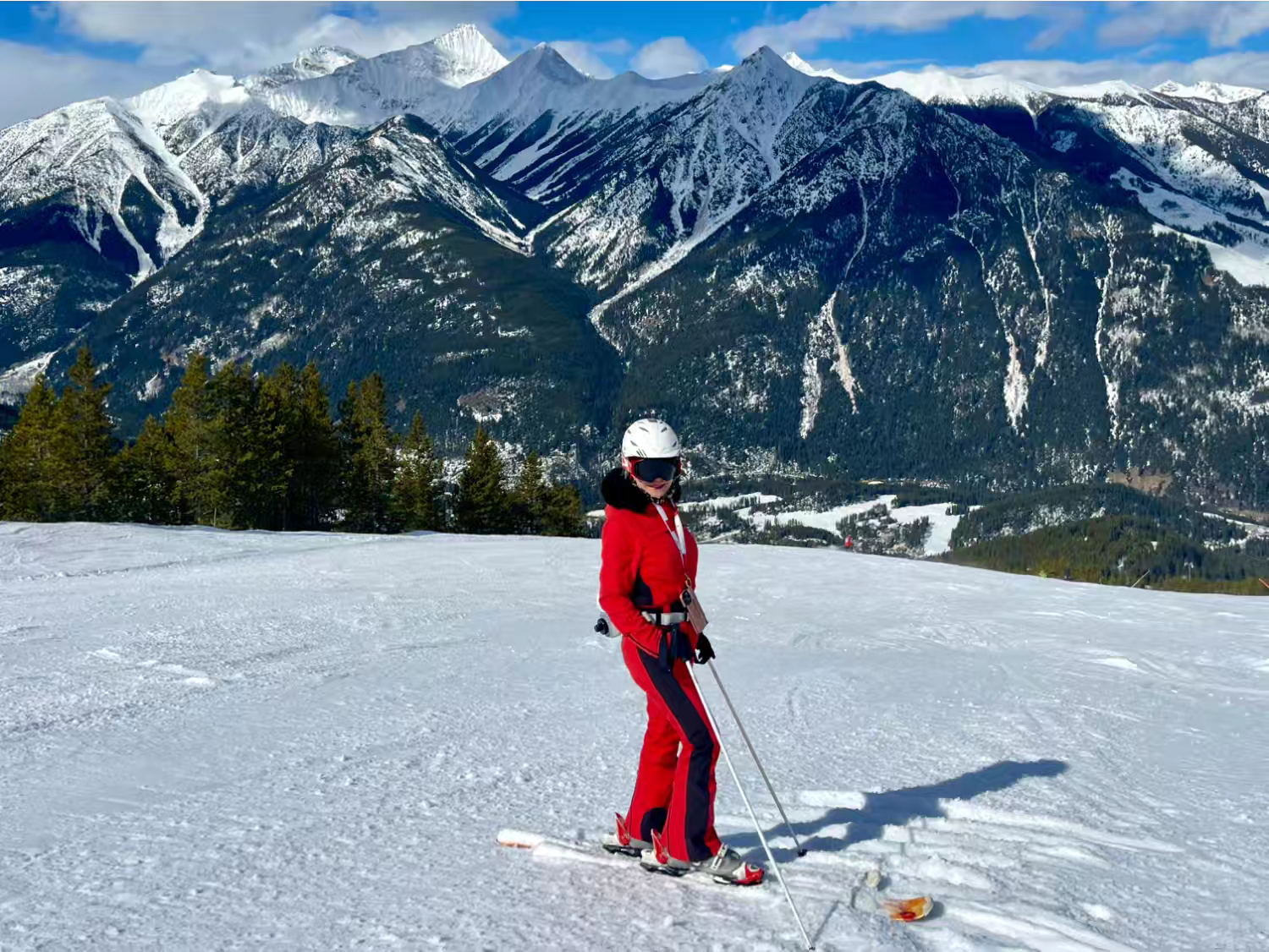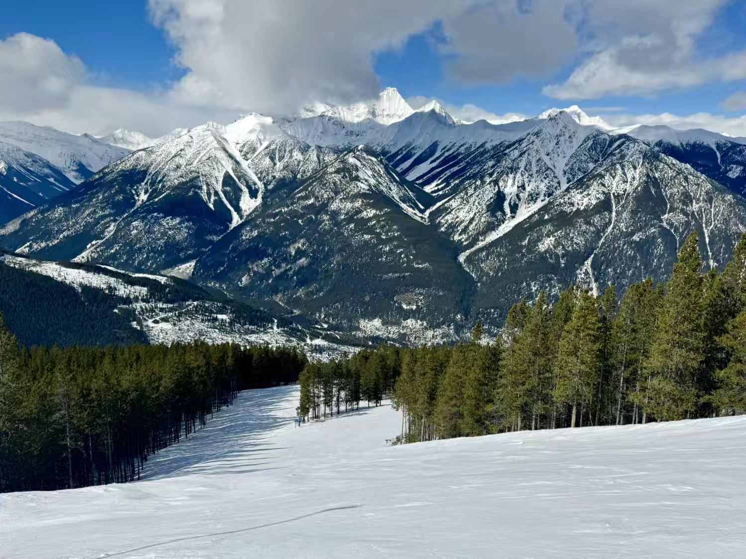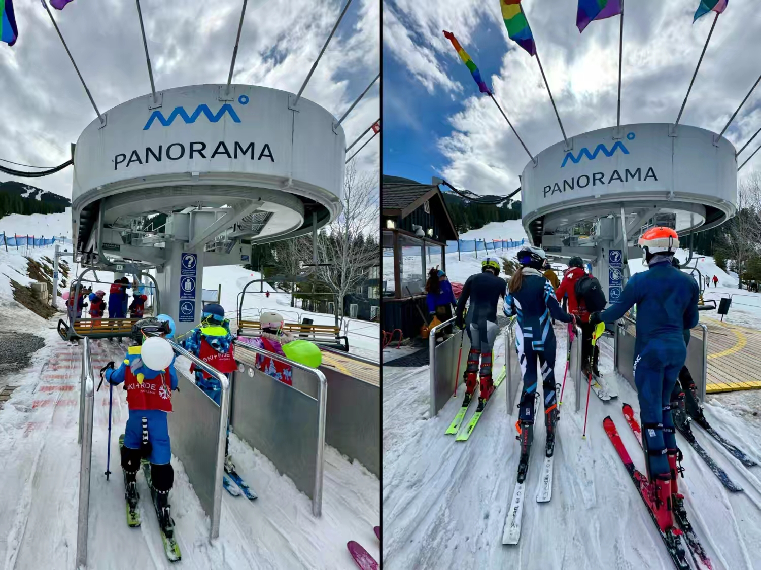 在Panorama的那两天我们终于又赶上了蓝天白云的好天气,但雪况却没从前几日的高气温和雨雪天恢复过来,因气温下降雪道反而变得特别冰,可见即使是西部大山的雪场也是要看天吃饭的,这次在Panorama遇上的冰面,特别是高海拔区,真的是冰出了新高度,我们在美东雪场滑了那么些年,都难得遇上这么冰,简直就像穿着雪板滑冰;)