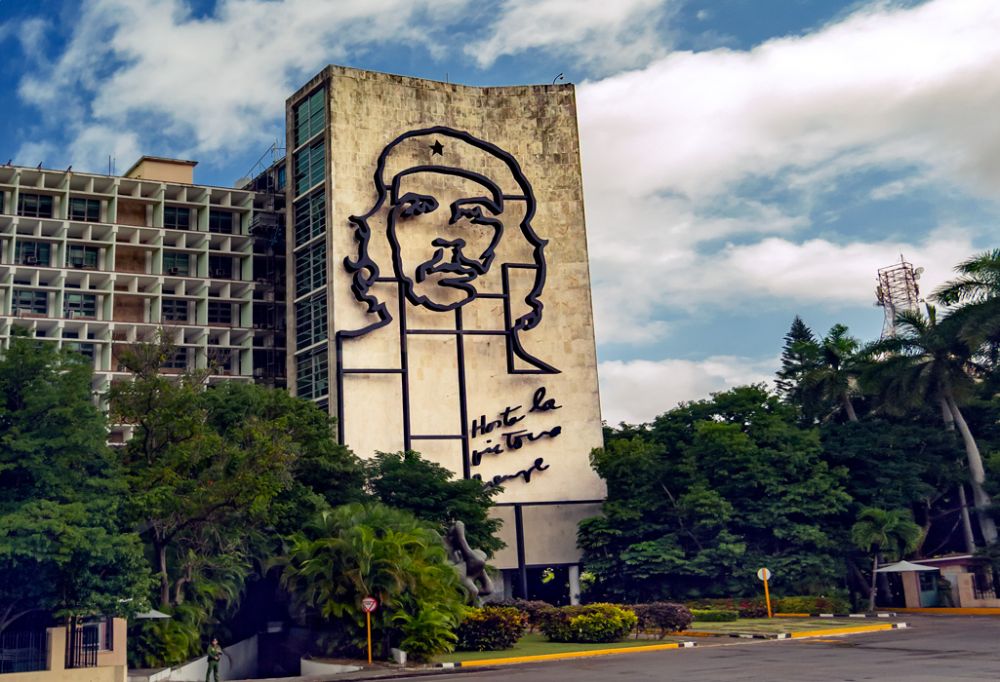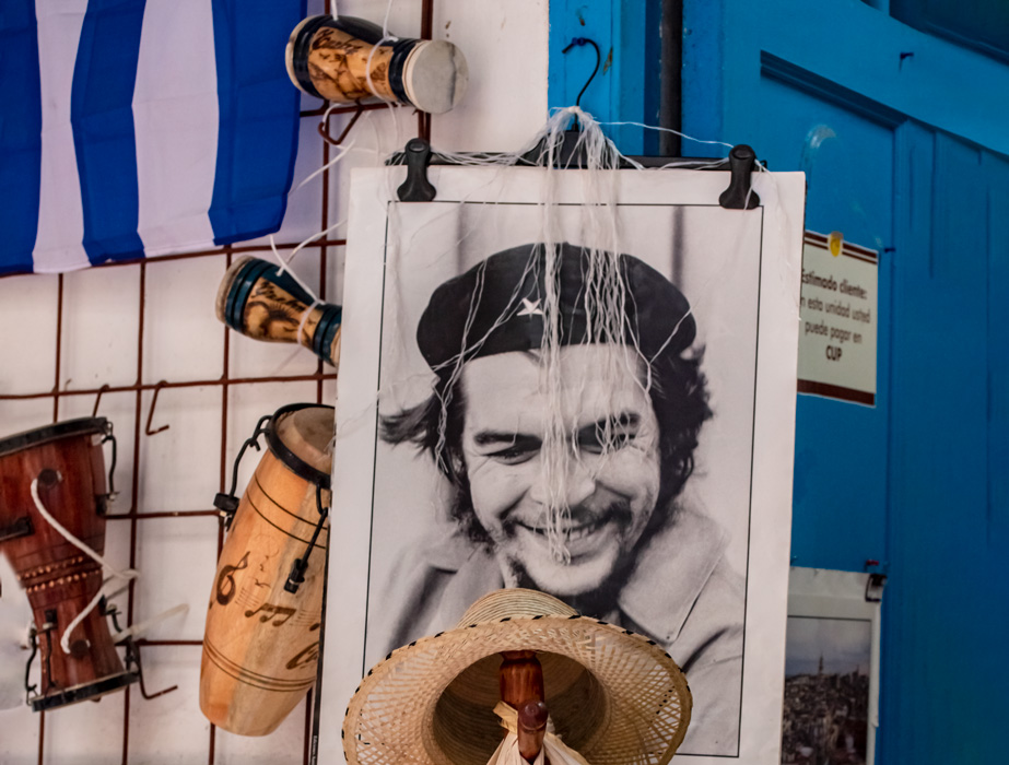 另一栋楼同样大小的线条头像是革命领导人卡米洛,奇怪,整个哈瓦那鲜见卡斯特罗兄弟的大幅肖像,也没有塑像。满大街到处都是印着切.格瓦拉头像的纪念品,T恤、包包、杯子、工艺品、宣传画,明信片,其实在整个拉美地区,切.格瓦拉已经成为波普艺术的主题,叛逆一点的年轻人用切.格瓦拉头像装扮自己。