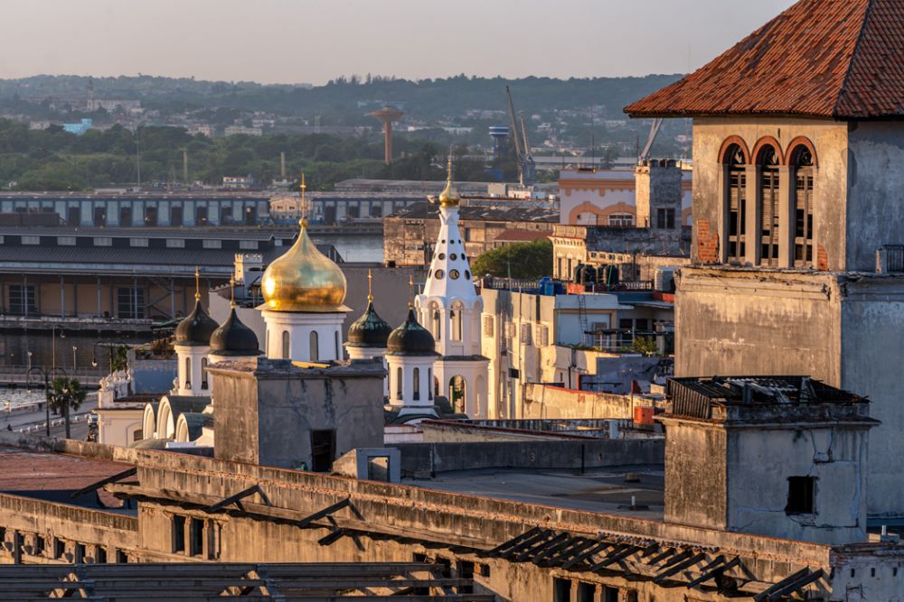 导游得知我们是中国人后,特意提到哈瓦那有个中国城,二十世纪初古巴大兴土木修建铁路时,从中国招收了几十万华工,后来这些华工在古巴安家落户,中国人善于经商又勤奋,经过几代人后一般都家境殷实。革命后国有化浪潮席卷了华人圈,第一波富人私产被没收,第二波卡斯特罗“向小商贩开战”,普通华人做点小生意也没门了,绝大多数华人落荒而逃,离开了古巴,中国城华人寥寥无几。近年中国城入口建起了一座牌坊,新修的,中国政府出资。哈瓦那港口附近有一座俄罗斯东正教洋葱头教堂,是2002年向俄罗斯表示友好的时候修建的,古巴历来并没有多少俄罗斯裔居民,过去跟苏联交好时有些卖拉达车的常驻古巴,教堂揭幕仪式上来了为数不多的俄国使馆人员。