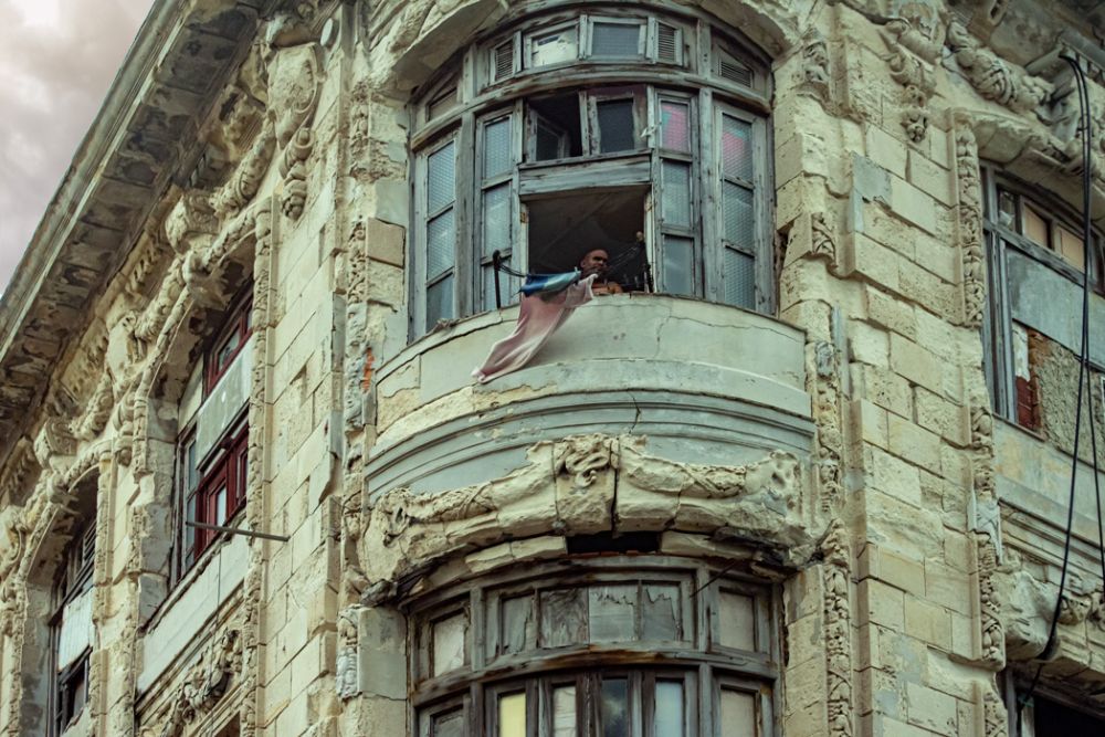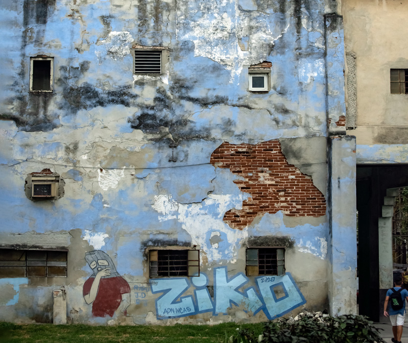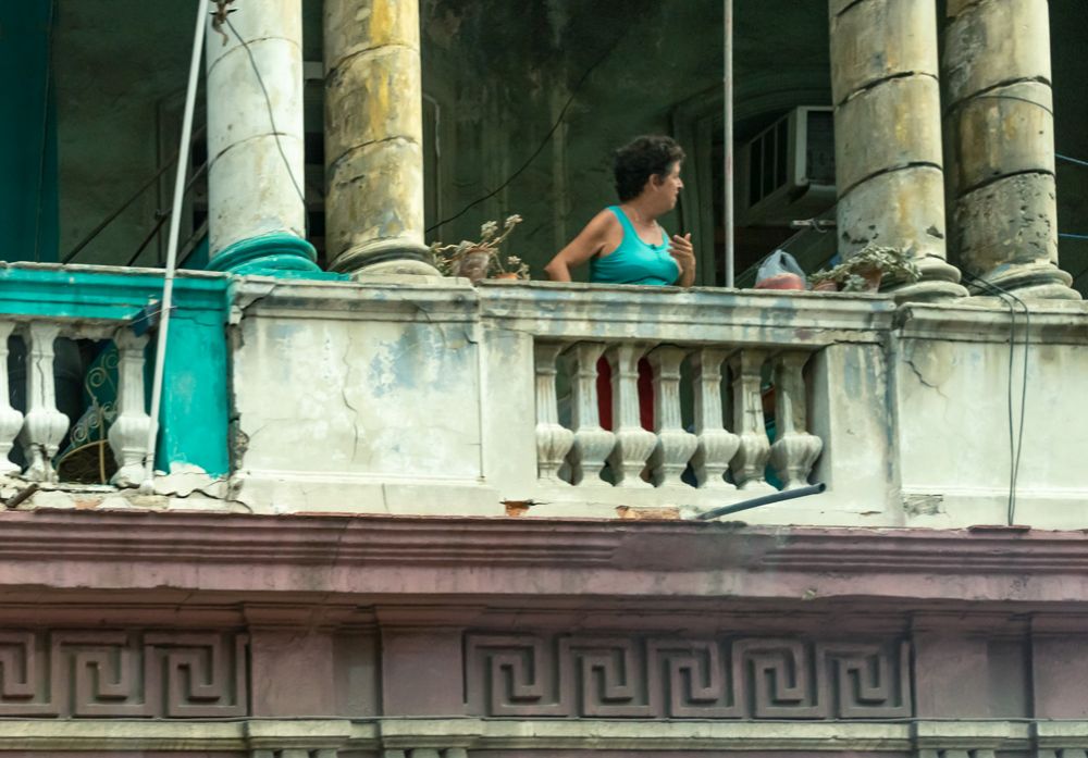下午要参观三个地方,第一个去哥伦布公墓,顺道观赏哈瓦那著名的滨海大道Malecon,导游莉迪亚抱歉地告诉我们,今天海里起大浪,浪潮涌上堤坝,滨海大道海水倒灌,十分危险,大道被封路,我们只能从市内与滨海大道平行的街走。这条街上全是老式西班牙建筑,殖民风格,高穹顶,窄门窗,木百叶,装饰石雕,看得出曾经非常风光,如今满目疮痍,破旧不堪