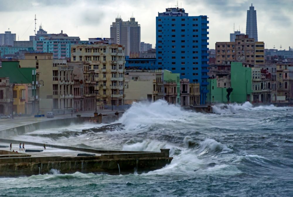 莉迪亚解释说这是因为房屋靠海,海风吹来潮气将房屋严重蛀蚀,天长日久又没有维护,维修材料稀缺昂贵,加上体制的原因,私人维修的手续繁杂,所以就成了烂摊子,其实这些老房子要是适当的修整一番会是一道非常有品位的复古风景线。到了哈瓦那不去滨海大道是遗憾,但是大巴司机想方设法在巷子里拐来拐去终于拐上滨海大道开了一段路,让我们领略了一下临海风光,白花花的海浪汹涌澎湃,大道呈曲线形,远远看去的确壮观。