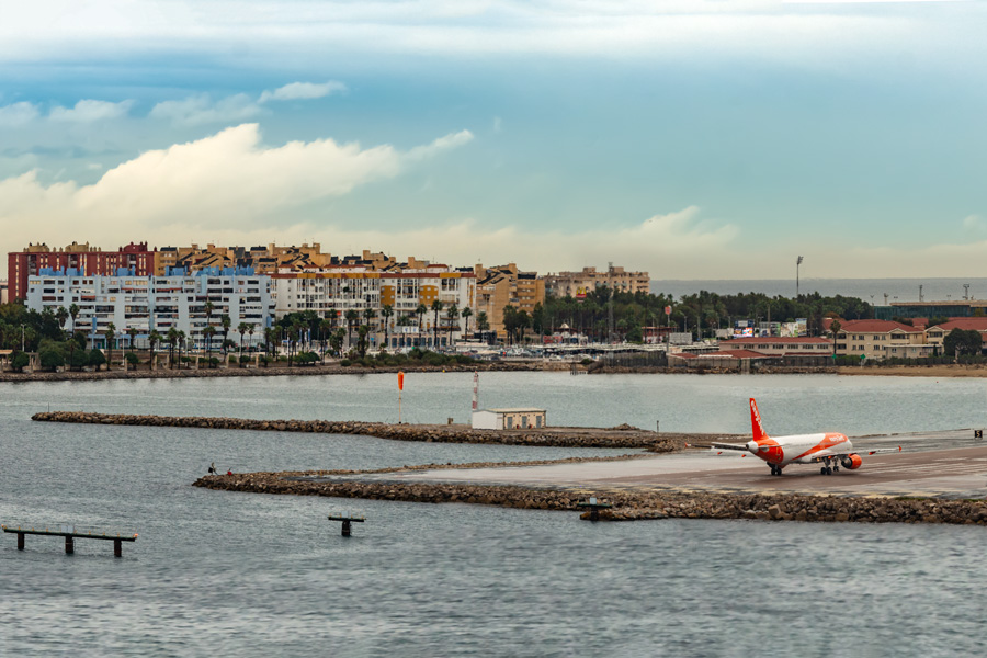 这个机场跑道靠海那一段是填海填出来的,一共就2000米长,最大能接受的飞机是737 。还是觉得太短,在这种跑道降落真要点勇气和技术。如果遇到狂风暴雨的坏天气,从英国来的飞机就得改道降落到临近的西班牙城市马拉加去。