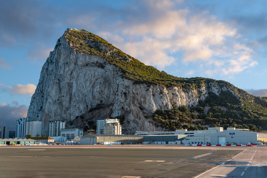 直布罗陀机场很有意思,填海造就,横在边境线上。