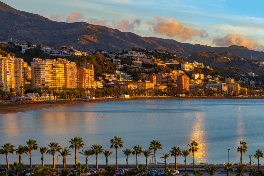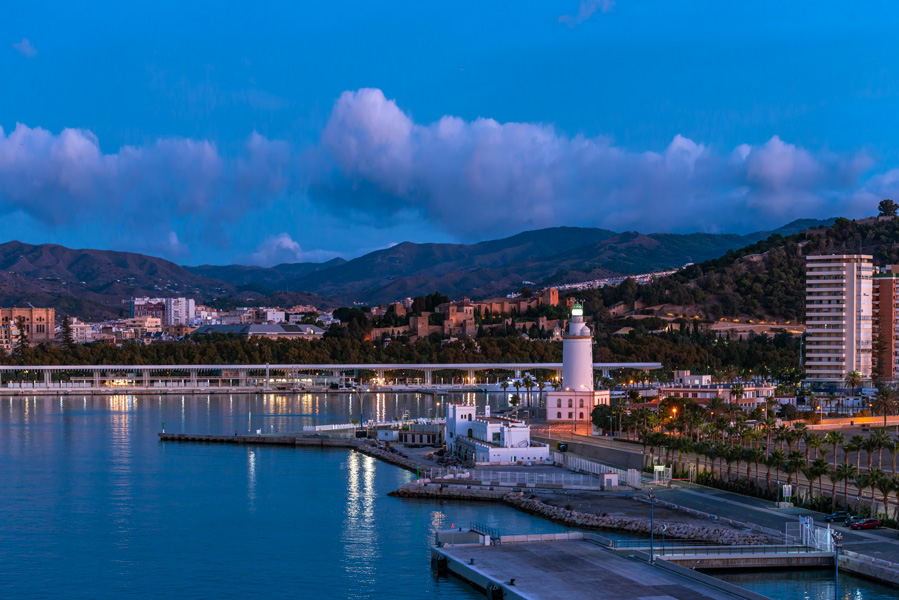 游轮进入地中海后,在西班牙马拉加(Malaga)停靠。马拉加是西班牙第二大地中海港口城市,清晨起床时游轮已经进港靠岸,照例上到顶层甲板拍了一通晨照。港口标志物是马拉加灯塔。