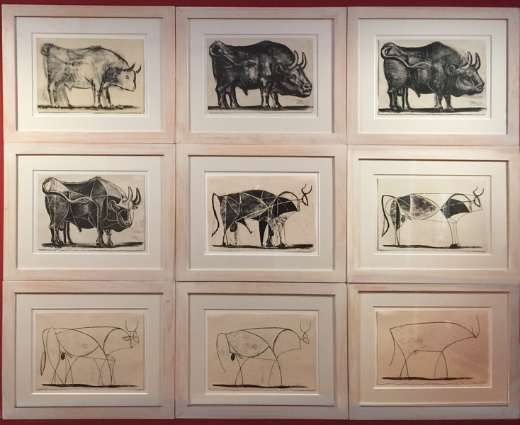 博物馆里有个视频播放屏幕,放映的片子表现毕大师作画过程,挺稀有的。毕大师的绝活是“一笔画”或“几笔画”,寥寥数笔,活灵活现。回忆起小时候在《少年文艺》还是《小朋友》?上看到的鸽子,猫头鹰和公牛,就是老毕勾勒的。老毕那时挺激进的,同情共产国际,还加入了法国共产党,所以他的画不仅在“资”阵营也在“社”阵营吃香。