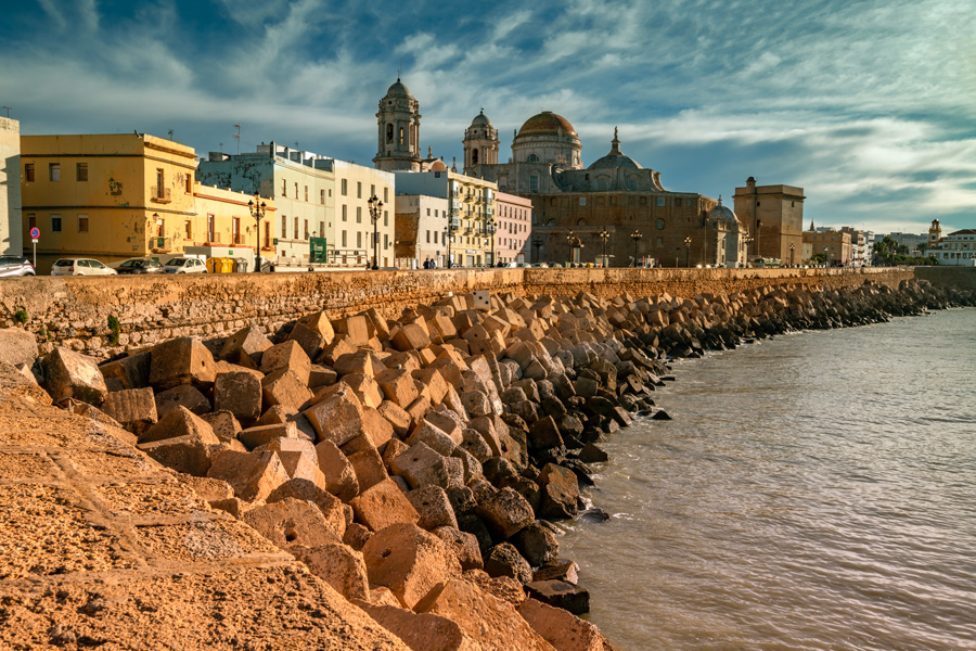 加迪斯是西班牙在大西洋海岸的港口城市,历史悠久,可追溯到1545年。那时正是大航海开启时期,加迪斯的港口被哥伦布选中,作为他第二次远征探索新大陆的出发港。加迪斯在瓜达尔基维尔河的入海口,逐渐替代了塞维利亚,成为黄金时代西班牙珍宝船从北美洲(主要是墨西哥和古巴)和南美洲(主要是哥伦比亚的卡塔赫纳和波多贝罗)回西班牙本土的航运终点站。