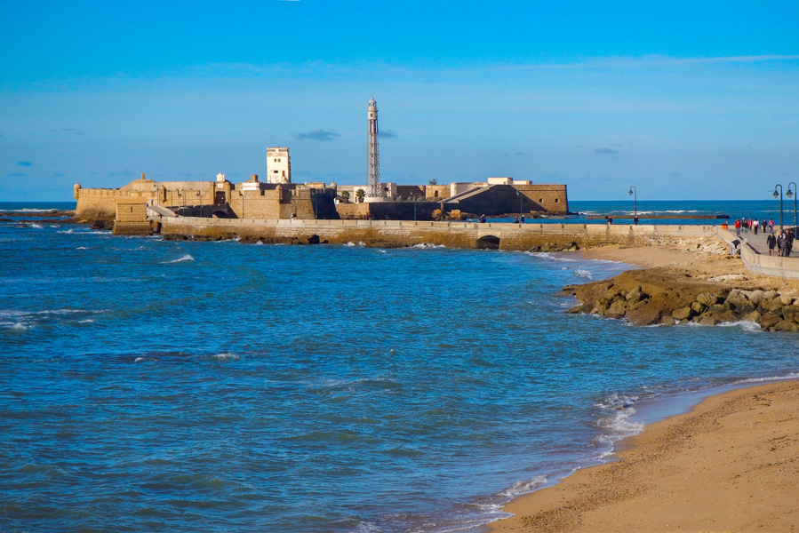 接下来是圣塞巴斯蒂安城堡(Castillo de San Sebastián),如今成了文化中心,夏季常常举行露天音乐会。继续沿着海岸走还遇见几座小型无名要塞,海边要塞一个接一个,跟加迪斯早年地位有关:西班牙从美洲回来的珍宝船就在这里登陆卸货,是个金银窝子,自然是海盗眼红的地方,防御工事可马虎不得。