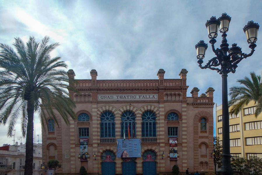 到了以前是军营的加迪斯大学,在加迪斯大学正门对面的林荫花园歇息时,遇见一群绿鹦鹉与鸽子抢面包渣吃。这种绿鹦鹉在加纳利群岛上也见过。绿鹦鹉很聪明,鸽子斗不过它们。它们抢到了吃食马上就飞到树梢上慢慢享用。逛游到了法利亚大剧院(El Gran Teatro Falla),建于1884-1905,穆德哈尔风格。剧院前面是个广场,到了“狂欢节”期间,全城人民都会身着奇装异服来到街上,与乐队一起载歌载舞,也吸引了众多游客前来观看。两只乐队通过滑稽的模仿,来评说当年的热门事件,乐队的讽刺言语和夸张的模仿让人捧腹。当然我们没有一来恰好就碰到“狂欢节”这种运气。
