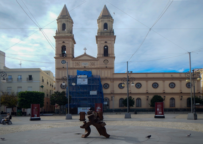 信步走到圣安东尼奥广场(Plaza Santa Antonio),这里是加迪斯多年来的城市中枢。那里座落着巴洛克风格的圣菲利佩·内里教堂,教堂的主圣坛上有画家牟立罗(Murillo)的作品。现在这里到处都在修缮,像个大大的工地。