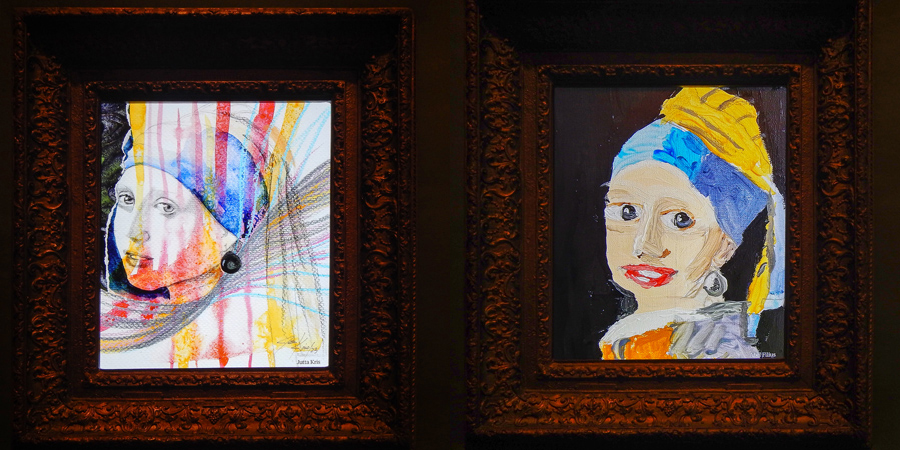在“珍珠女”离家远走阿姆斯特丹的空档期,莫瑞茨美术馆也没闲着,想出一妙招:号召民间以“我心目中的珍珠女孩”为主题作画,形式不限,万物皆可成为“珍珠女”。莫瑞茨在图片社交网站Instagram开设了此次活动的官方账号,收录投稿的作品,并在其中选取优胜者在展厅展览。世界各地的群众艺术家们踊跃参与,莫瑞茨收到了快上万幅投稿。5幅画胜出,获得殊荣,在“珍珠女”对面墙上位。另外170幅作品入选,在展室里的电子屏幕上滚动播出。
