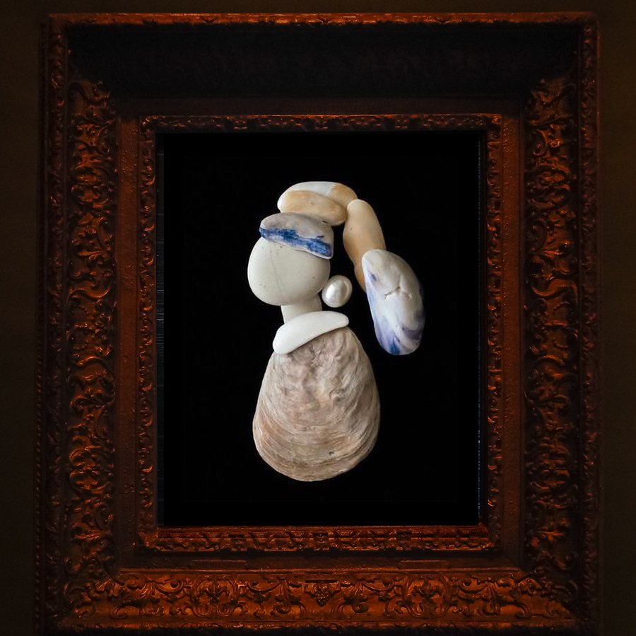 最后来看看吃货心目中的珍珠女:衣服是腌火腿片,头巾是白菜帮子,珍珠耳环呢,一粒腌渍橄榄。