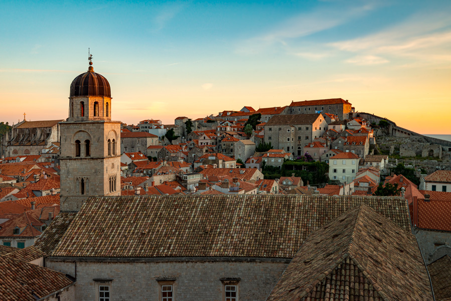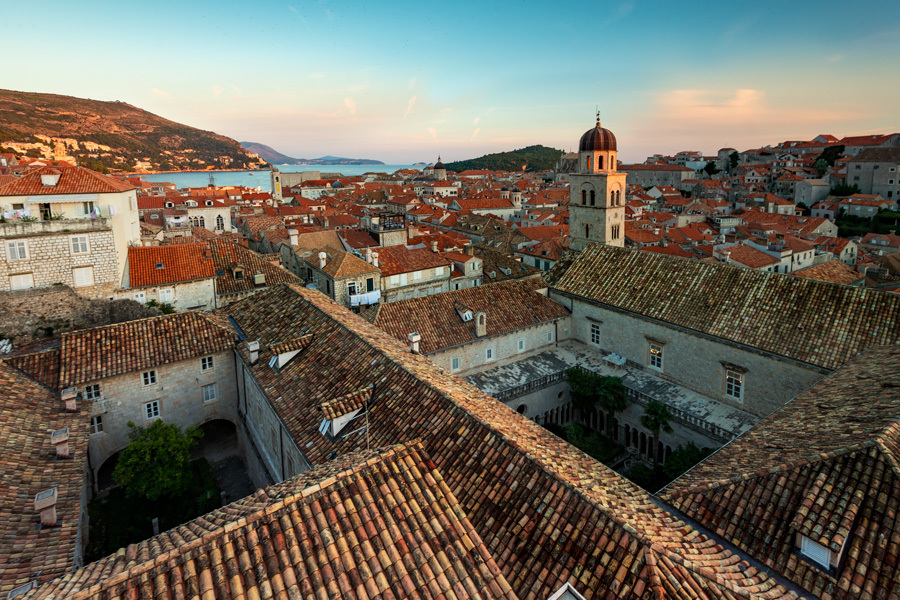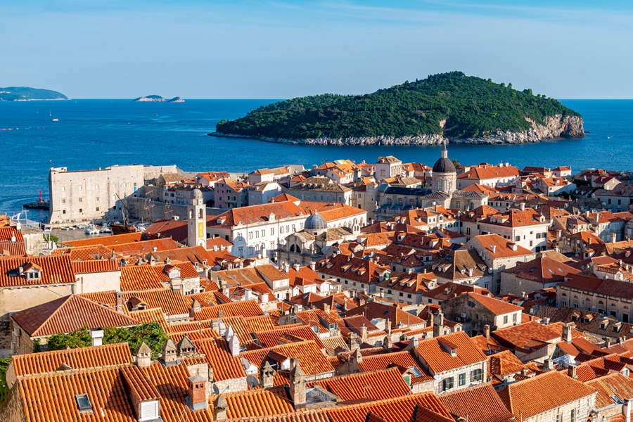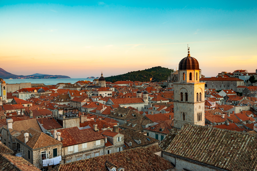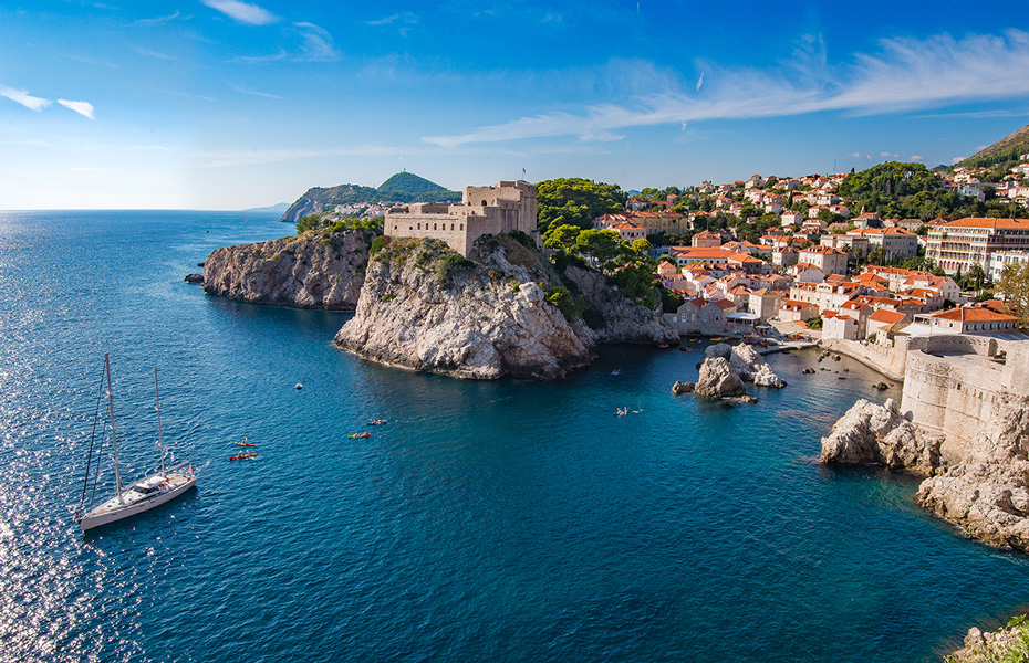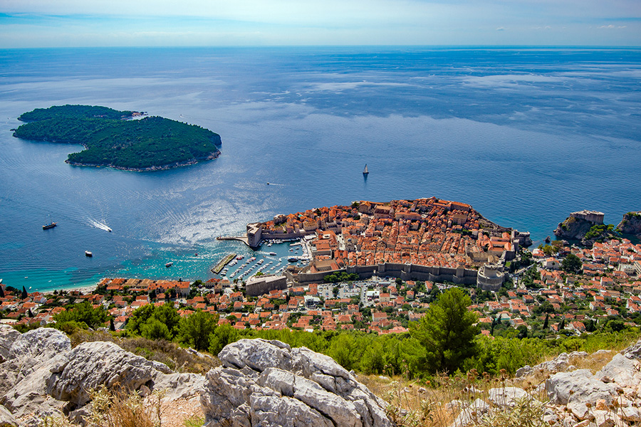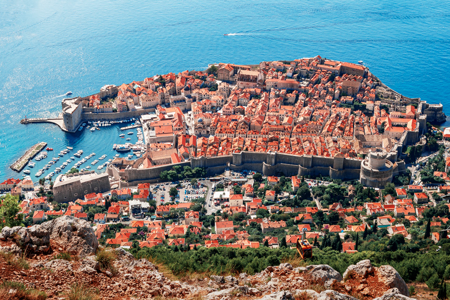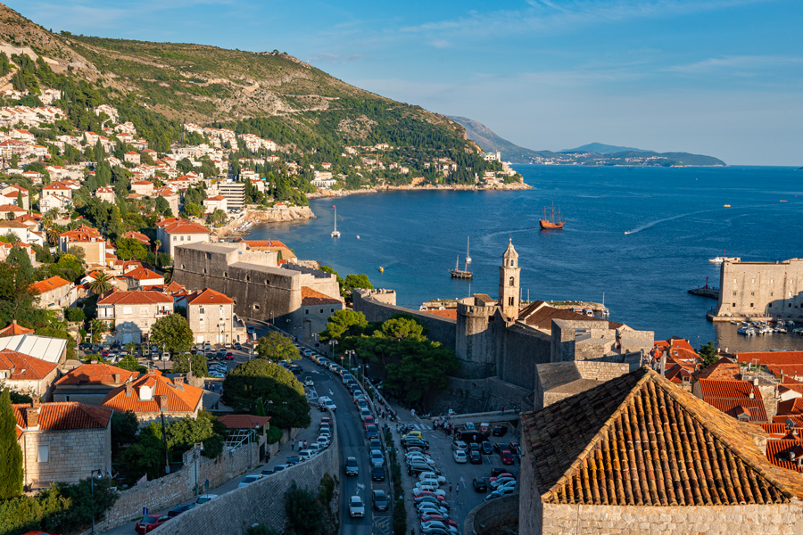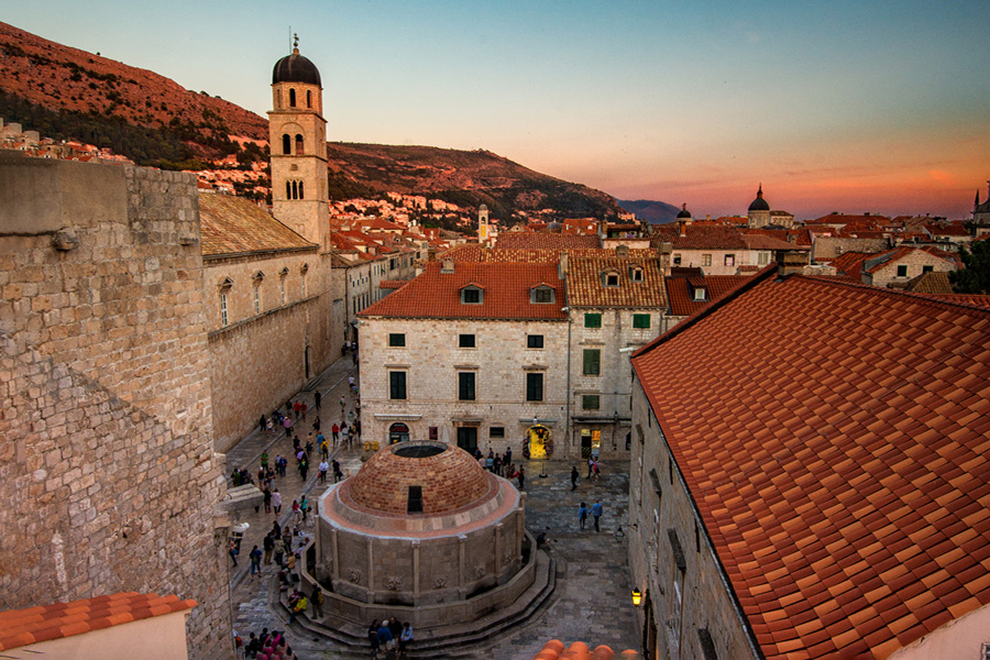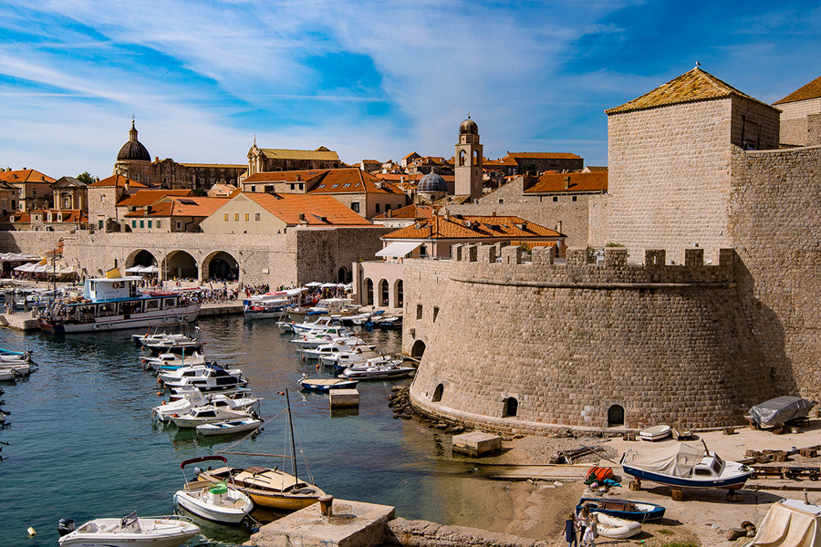 克罗地亚海滨城市杜布罗夫尼克(Dubrovnik)建造在亚得里亚海滨一个小水口里,有天然的避风港,历史上是个独立的城邦国,当时的海霸王,敢与威尼斯叫板竞争海上贸易。公元7世纪,老城由两处集居地逐步形成,一处集聚地住的是斯拉夫人,另一处居住着从卡夫塔(Cavtat)来的难民,两处村子在12世纪合并成一体,修建了城墙抵御外来入侵之敌。杜市老城于79年列为世界文化遗产,是亚得里亚海最热门的旅游胜地,与爱琴海的希腊圣岛比肩齐名。
