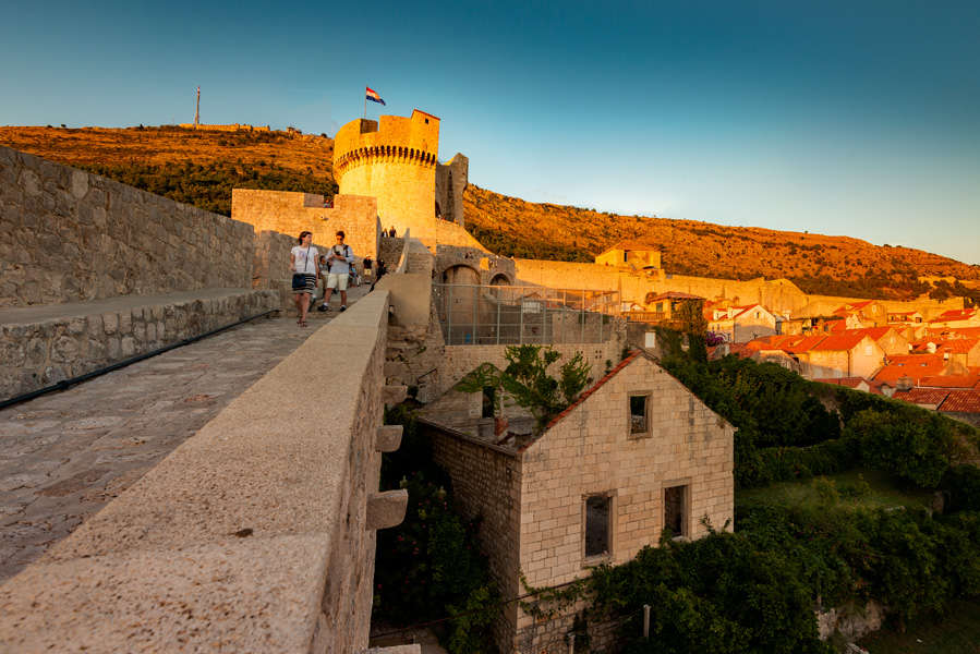 游轮要半夜才出港,所以我们有时间在老城拍夕照。下午5点开始杜城游的最精彩部分 - 走城墙。杜城的精华就是它完整的城墙,绕城走一圈2公里,城墙不是平整的,而是上上下下的阶梯。老城建筑可以追溯到中世纪,混杂文艺复兴时期的风格。历史上有过七次围城,其中五次杜城坚守住了,两次被攻陷,攻陷后改朝换代。每次围城都造成城内建筑的损毁,历史上也经历过一次大火和一次大地震。一次次的天灾人祸,一次次的重建,力图保留原始的格局和风貌,建成现在的样子。