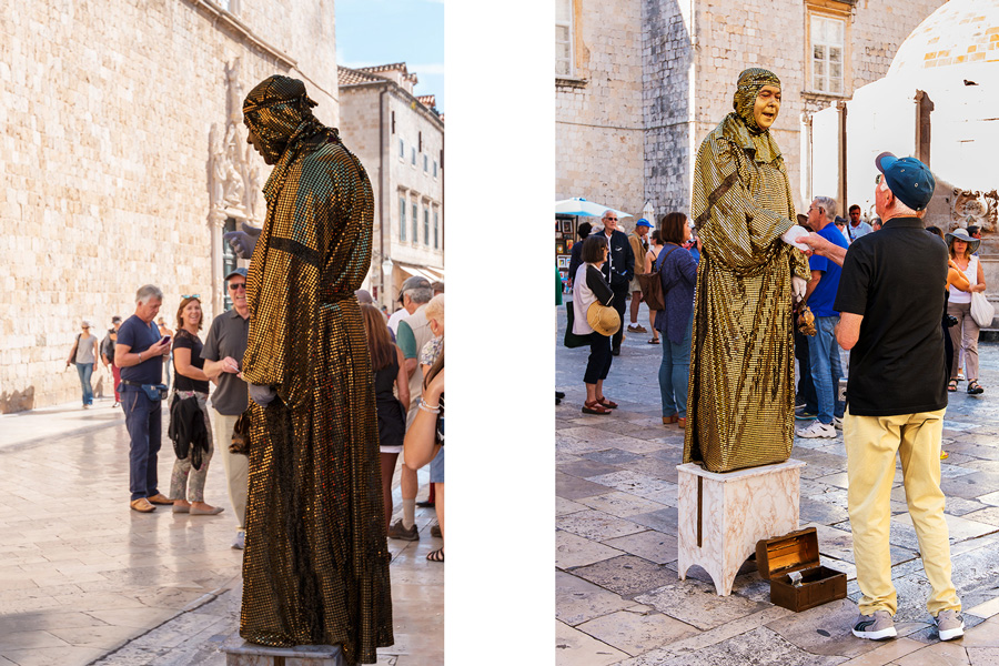 城中大道上到处有街头艺术家娱乐游人,这位是装扮成布道者的行为艺术家。
