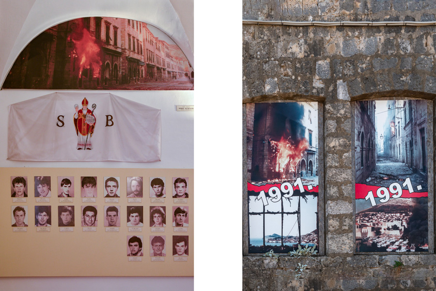 山顶上有个91年围城纪念馆,城中一个教堂的底层也挂着围城纪实照片。城市被战火蔓延时老城的厚重城墙发挥了巨大作用,市民们在墙角躲避炮火,杜城里许多居民自发参加抵抗运动,塞黑军队始终没有攻破杜城。纪念馆里四面墙上贴着抵抗烈士的照片,冰冷的死亡数目跟一张张鲜活的面孔挂上了钩,都是些年青男子,还不乏娃娃脸。战争残酷无情,付出最大代价的总是无辜的平民。